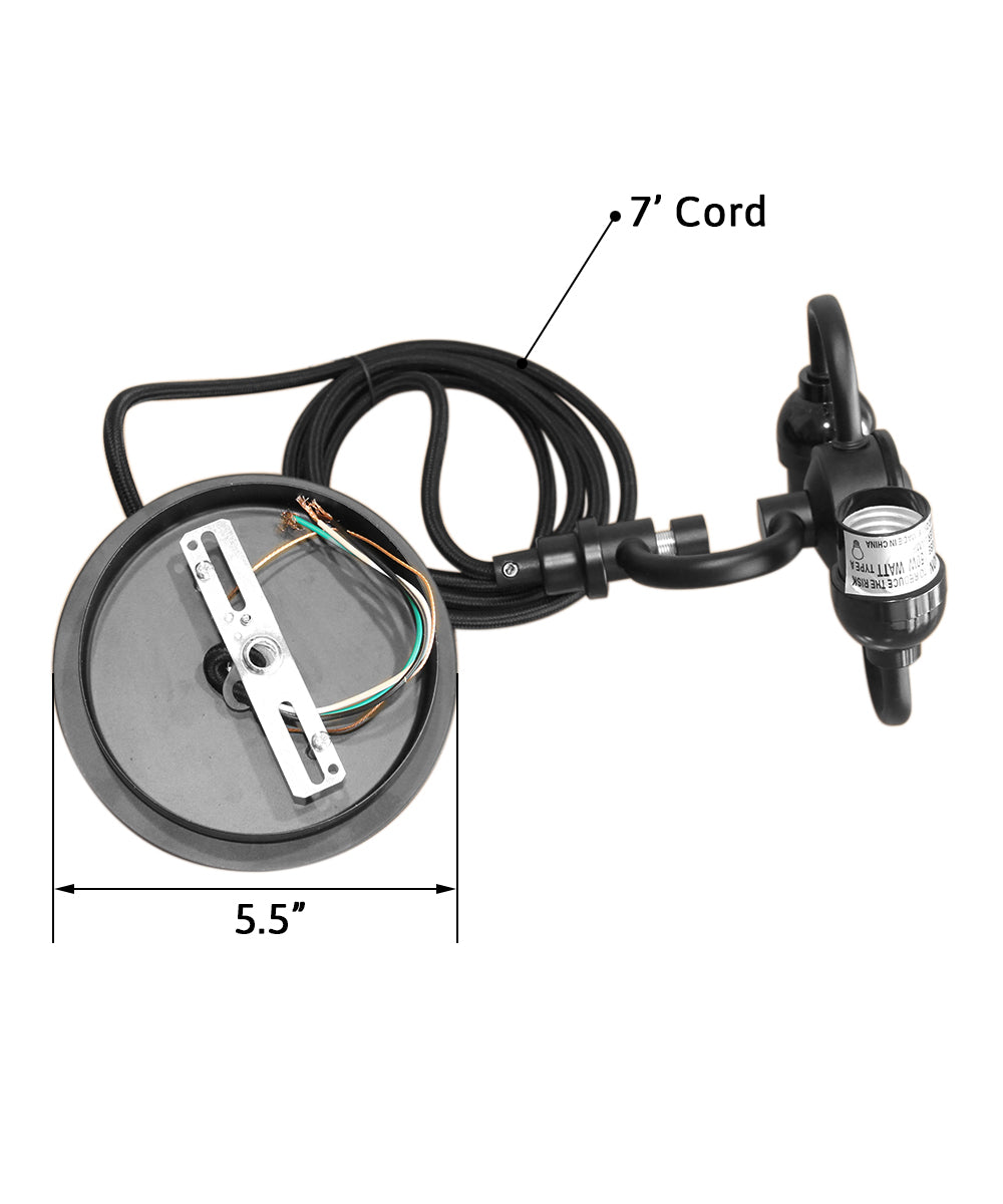 - 7' Round Black Fabric cord and deluxe canopy provide a modern upgrade.