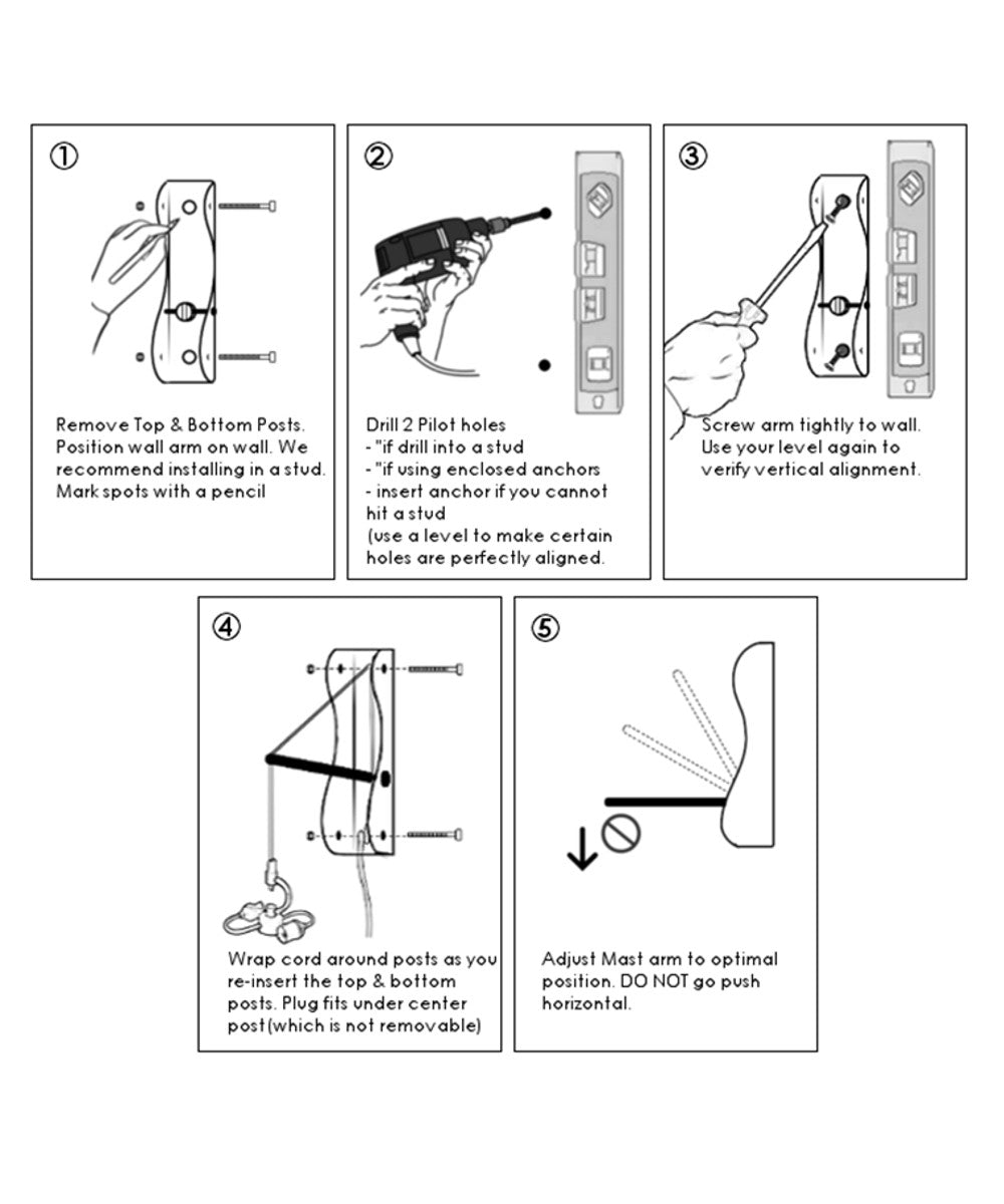 - Solid Steel Wall Arm - Easy to Mount cantilever MAST wall arm holds pendants up to 8 lbs. Arm rotates 90 degrees from horizontal to vertical.