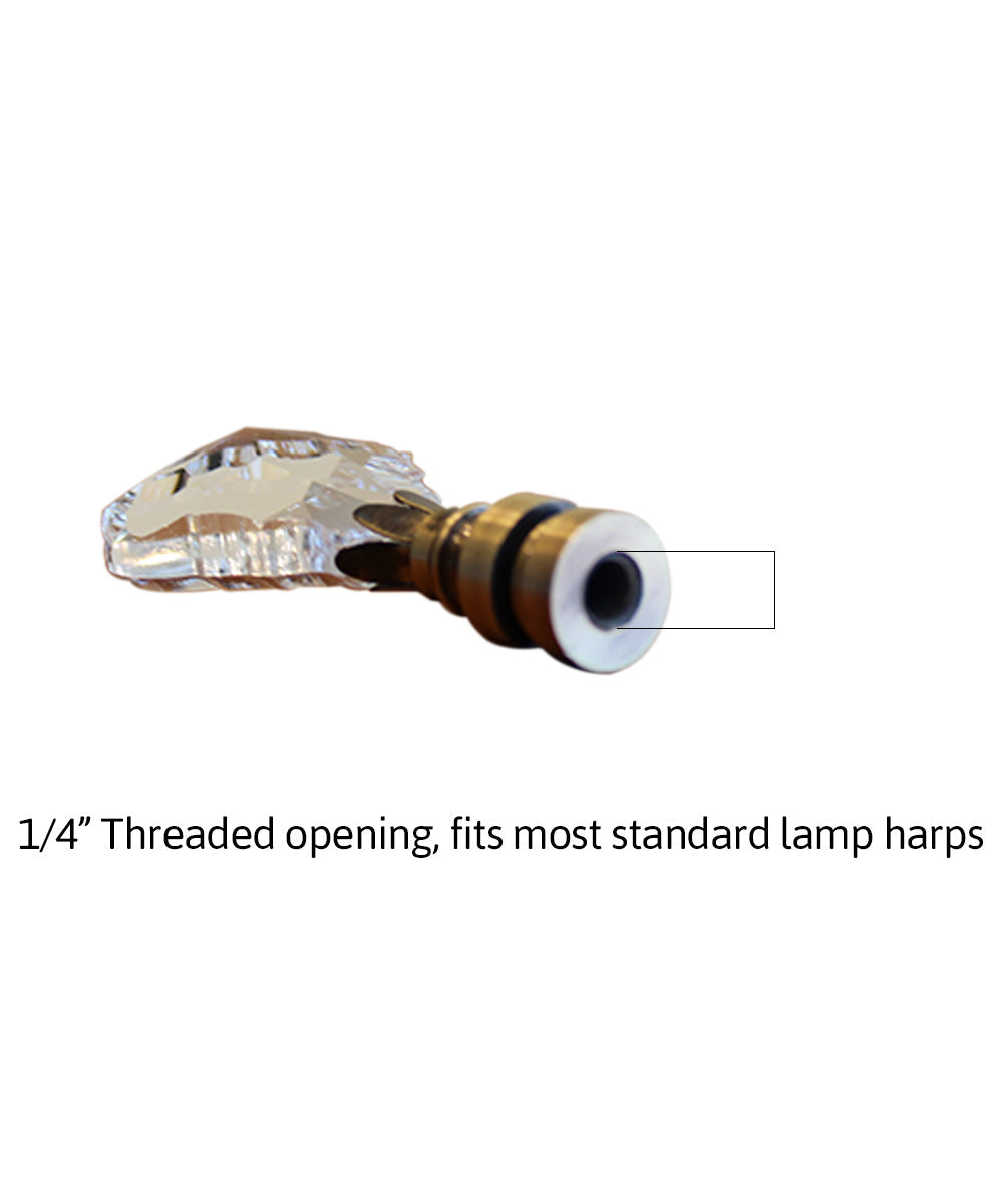 - CRYSTAL FINISH - crystal finish with antiqued brass base will match most lamp harps.