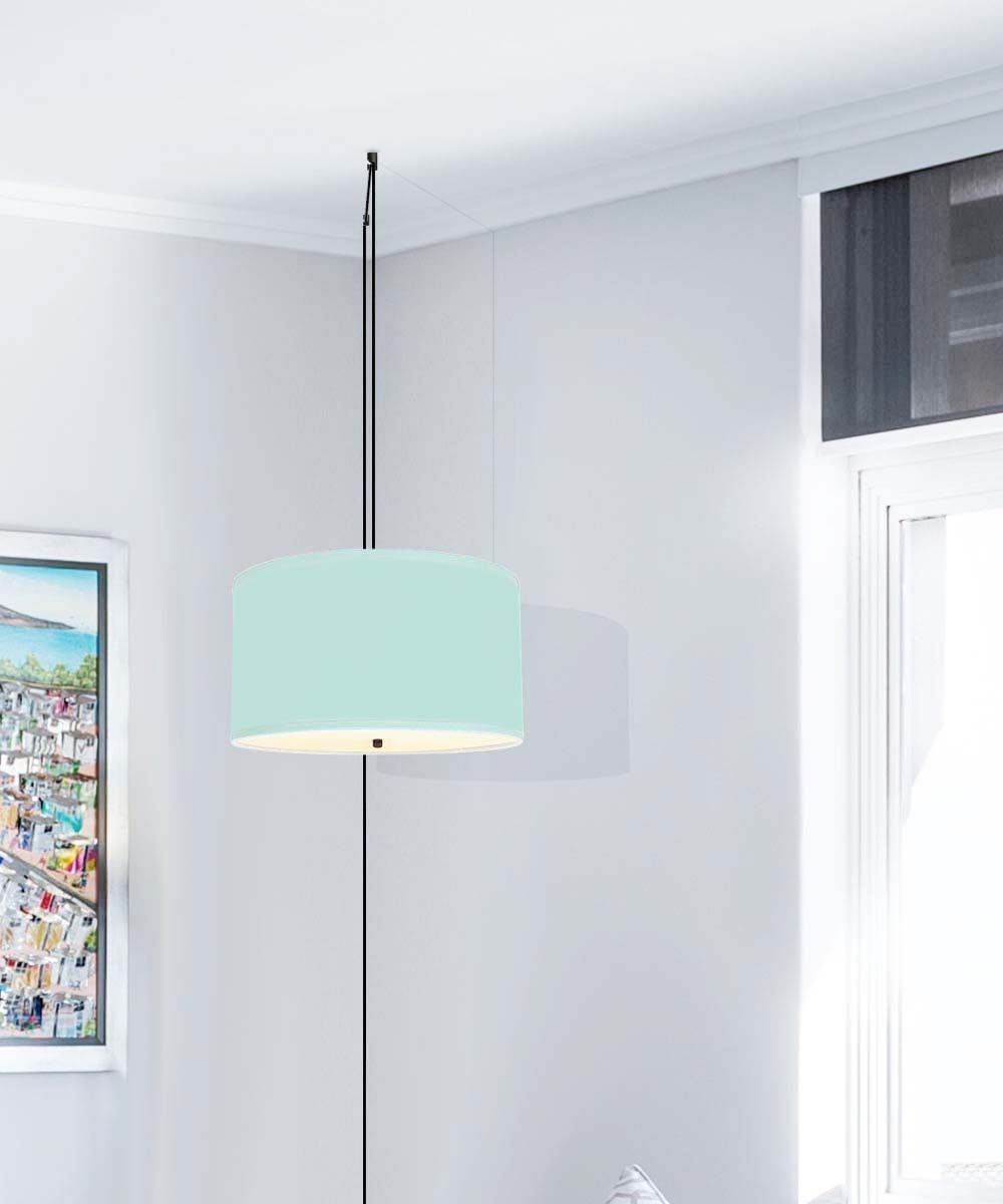 - COMPONENTS - Includes 15.5" Round Translucent Frosted White Diffuser, premium Island Paradise aqua blue linen shade, 2 premium "bishop" ceiling hooks, and all hardware.