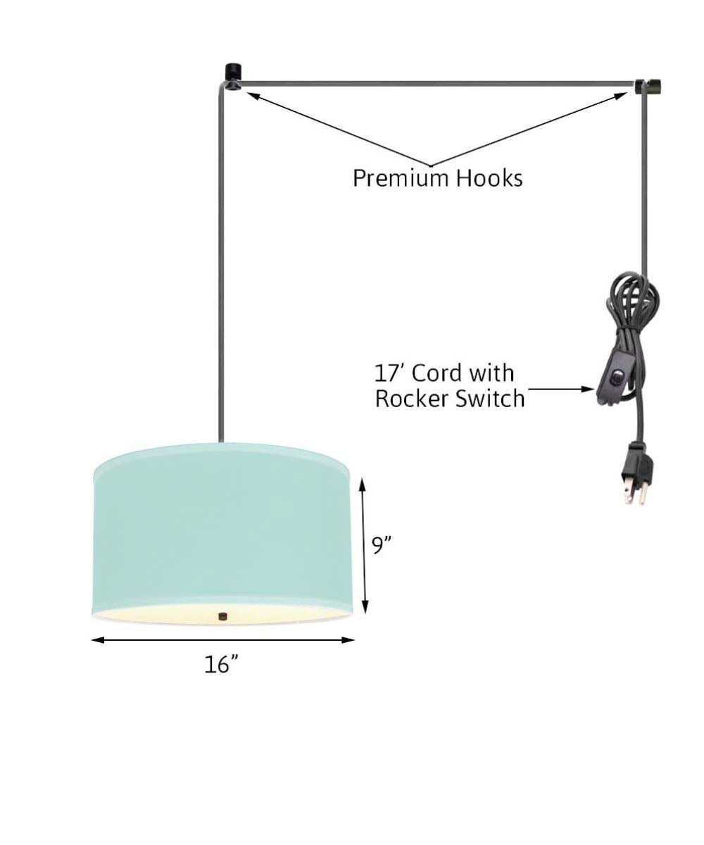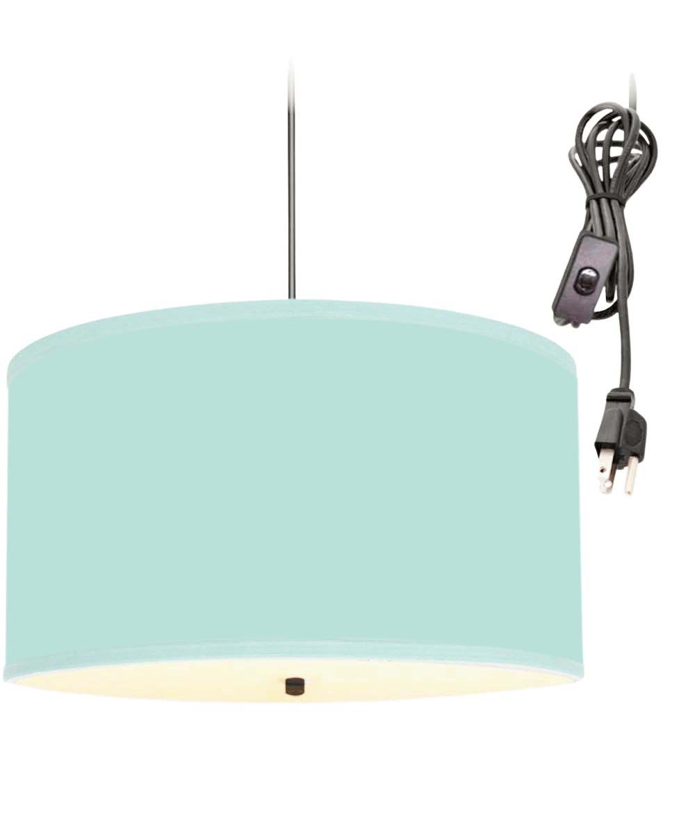 2 Light Swag Plug-In Pendant 16"w Island Paradise Aqua Linen Drum with Diffuser, Black Cord