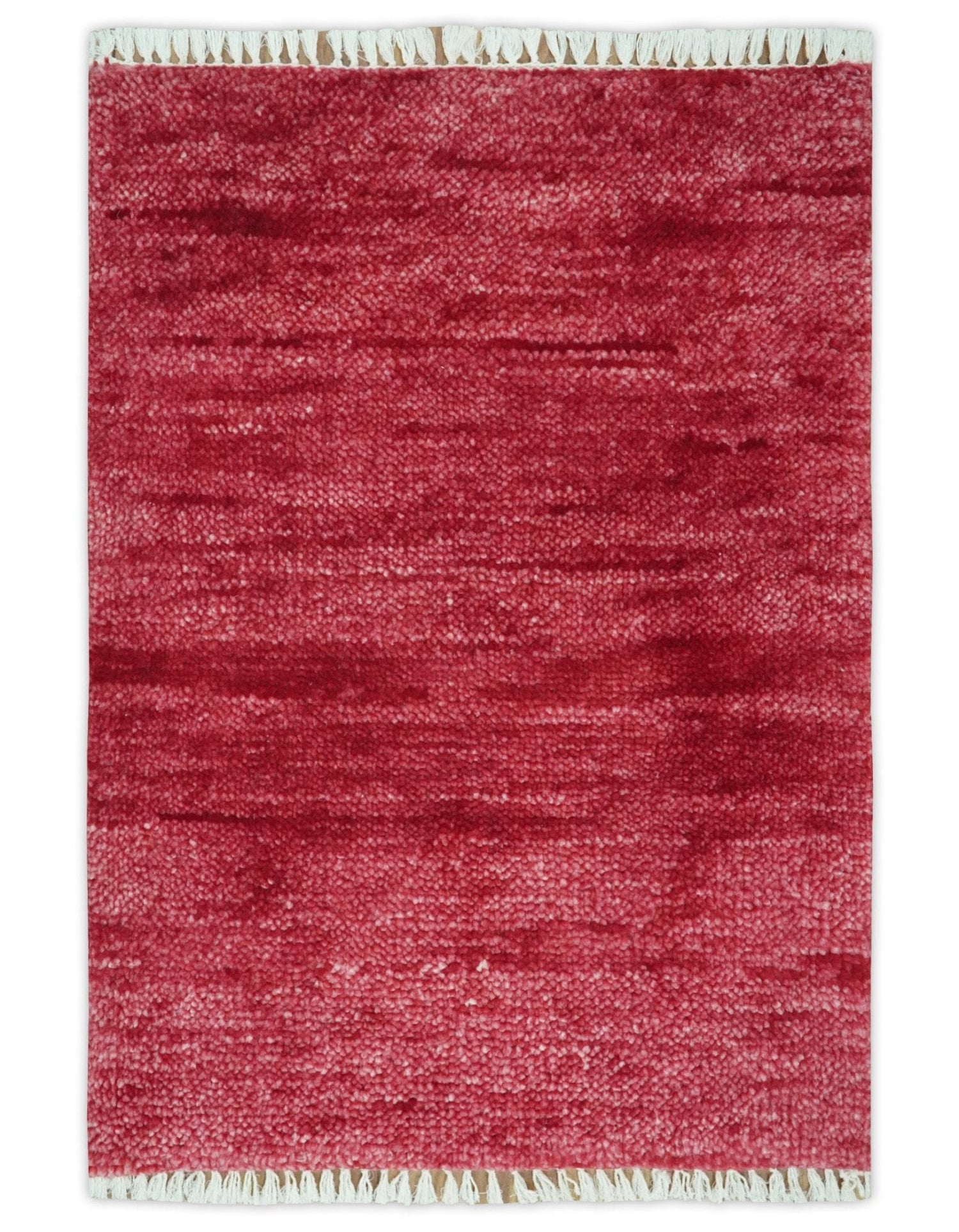 2X2.6 Solid Plain Red Hand knotted wool area rug