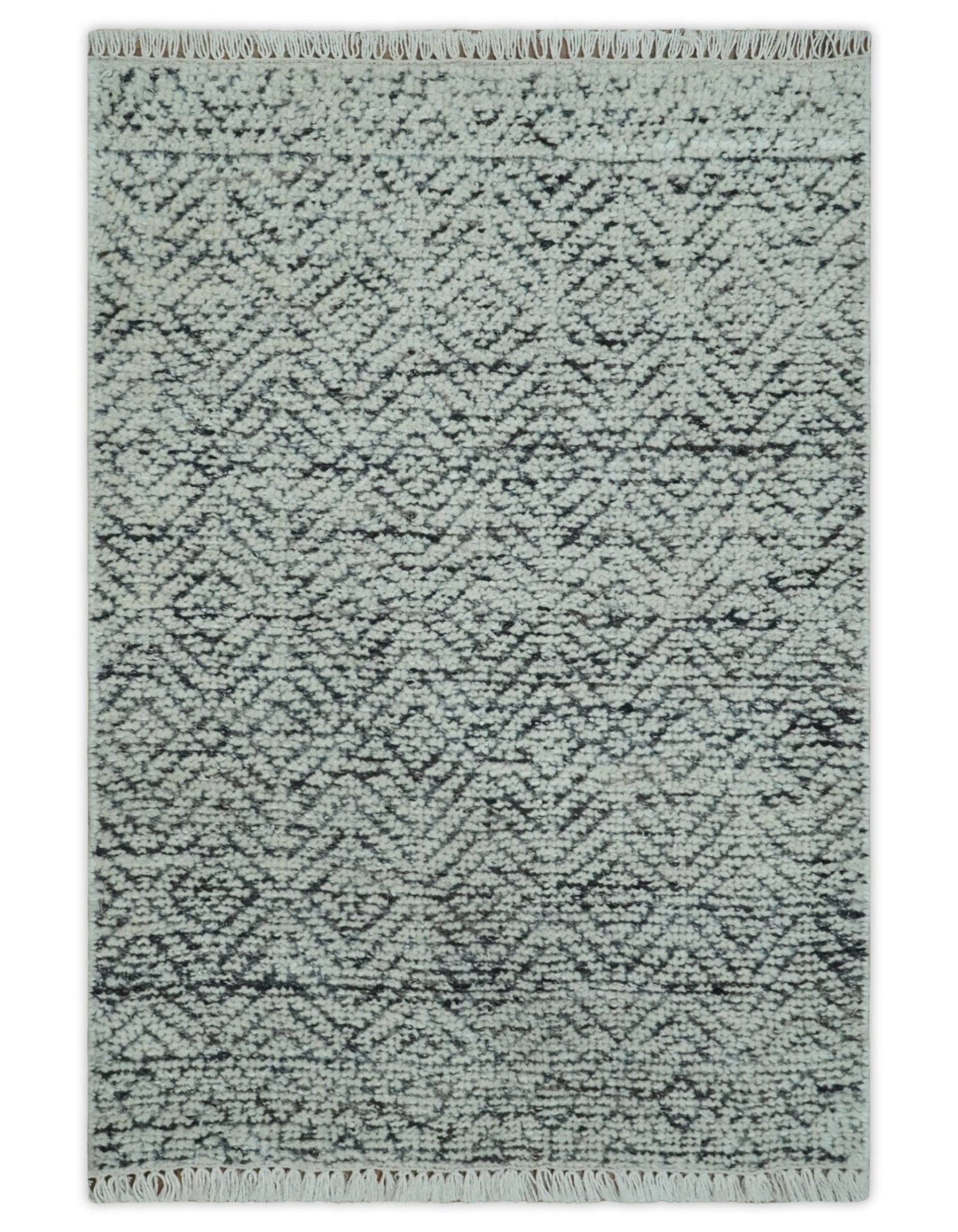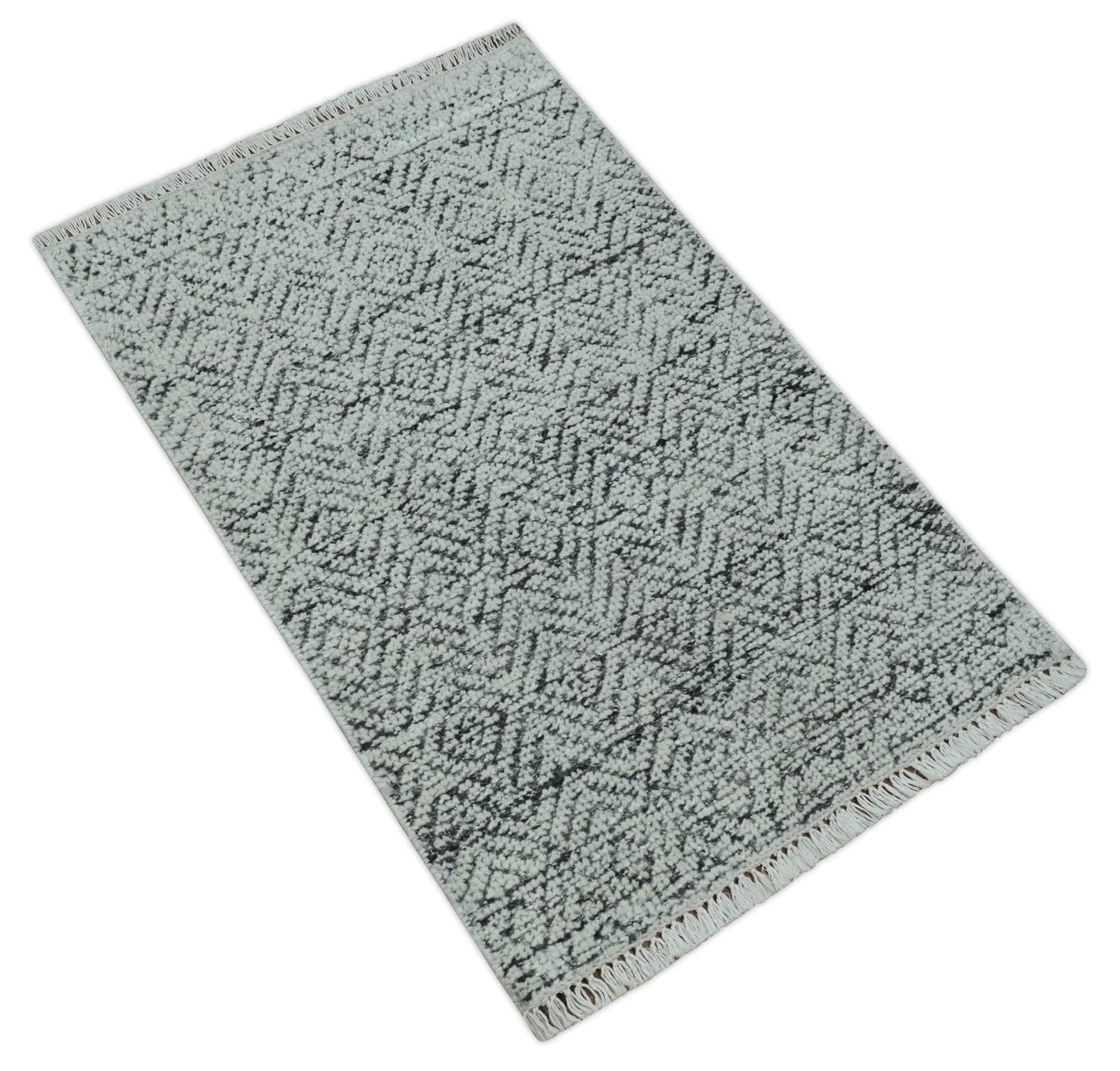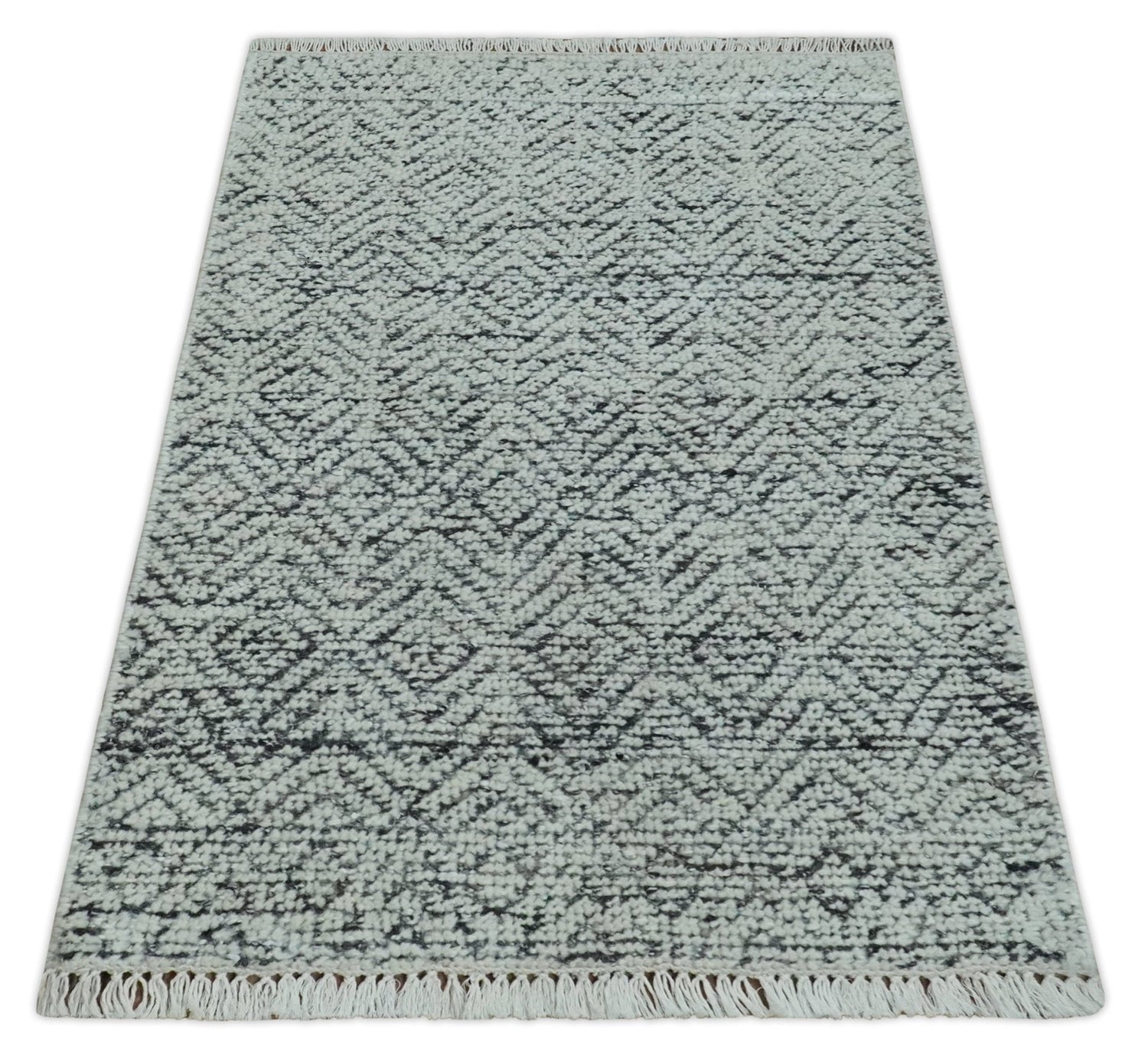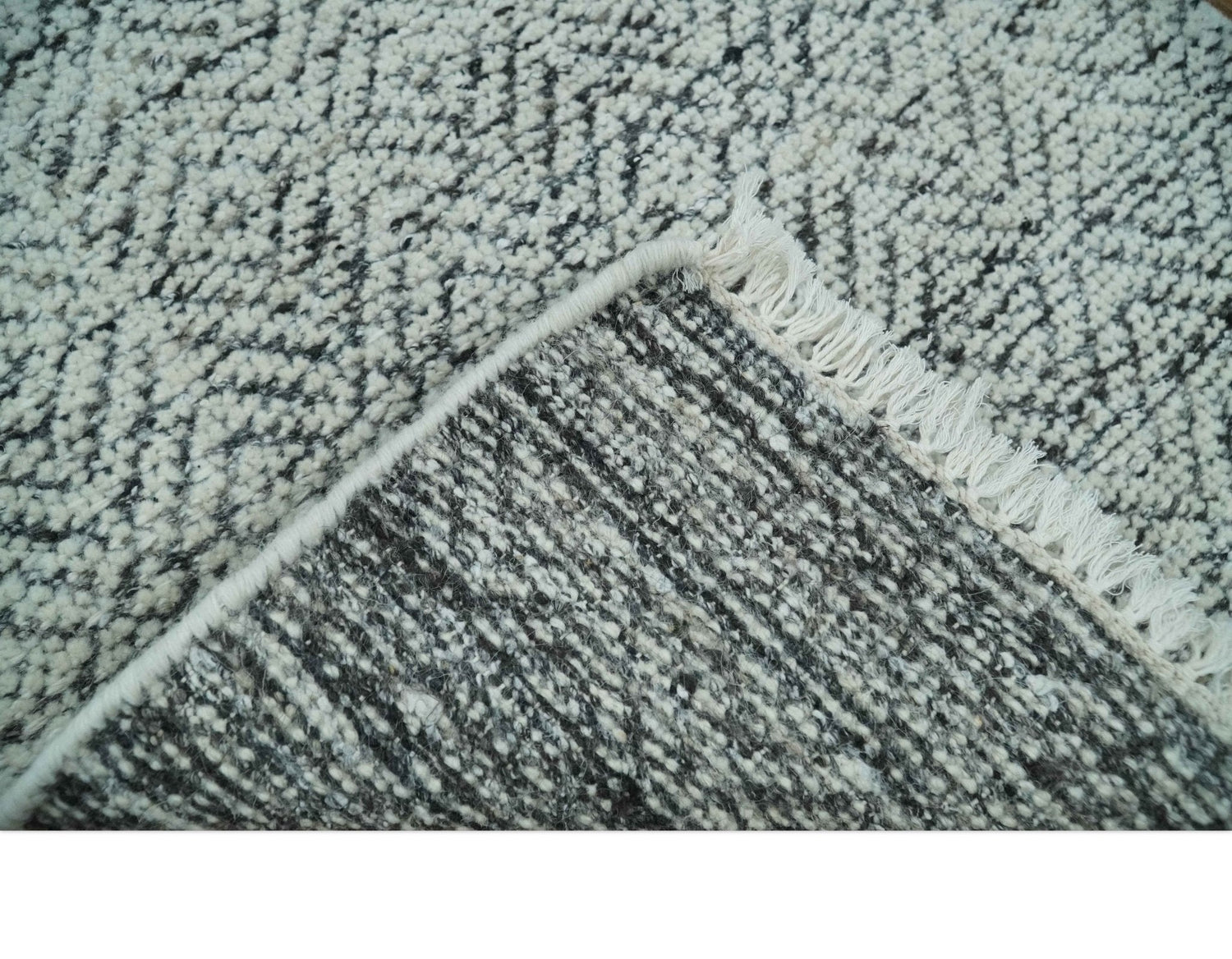 This 2x3 hand-knotted Wool Rug features Tribal Pattern Ivory and Charcoal Stripes, making it a perfect accent to your modern home decor. Crafted with care from high-quality materials, the carpet is designed to last, bringing years of enjoyment.