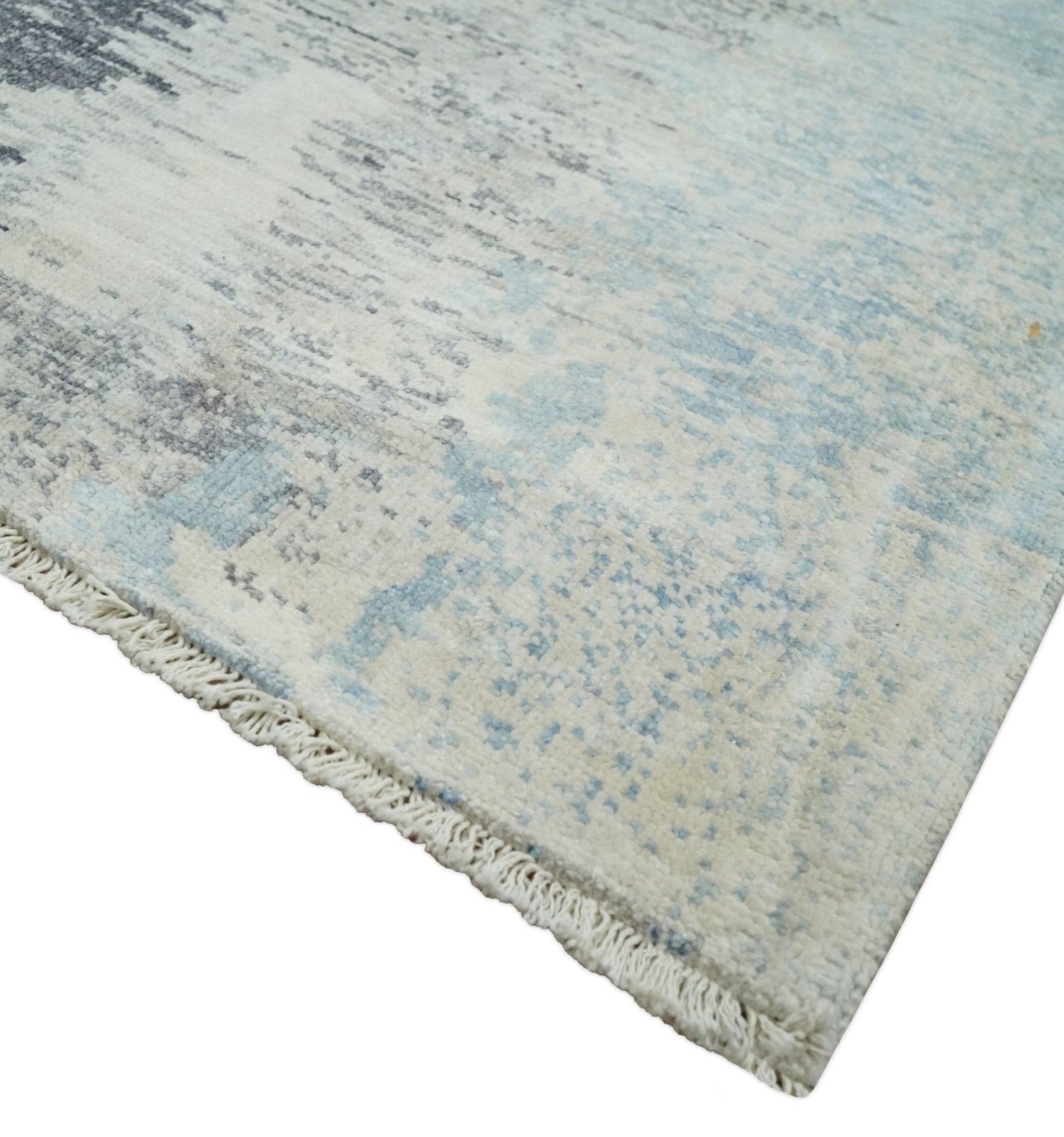 This fine handmade area rug is made with Bamboo Silk Silk. The Beige, Blue, and Charcoal color give a fresh and modern look to your space, and the abstract design adds a texture to the rug. This rug is a perfect fit for your dining room, living room, or bedroom.