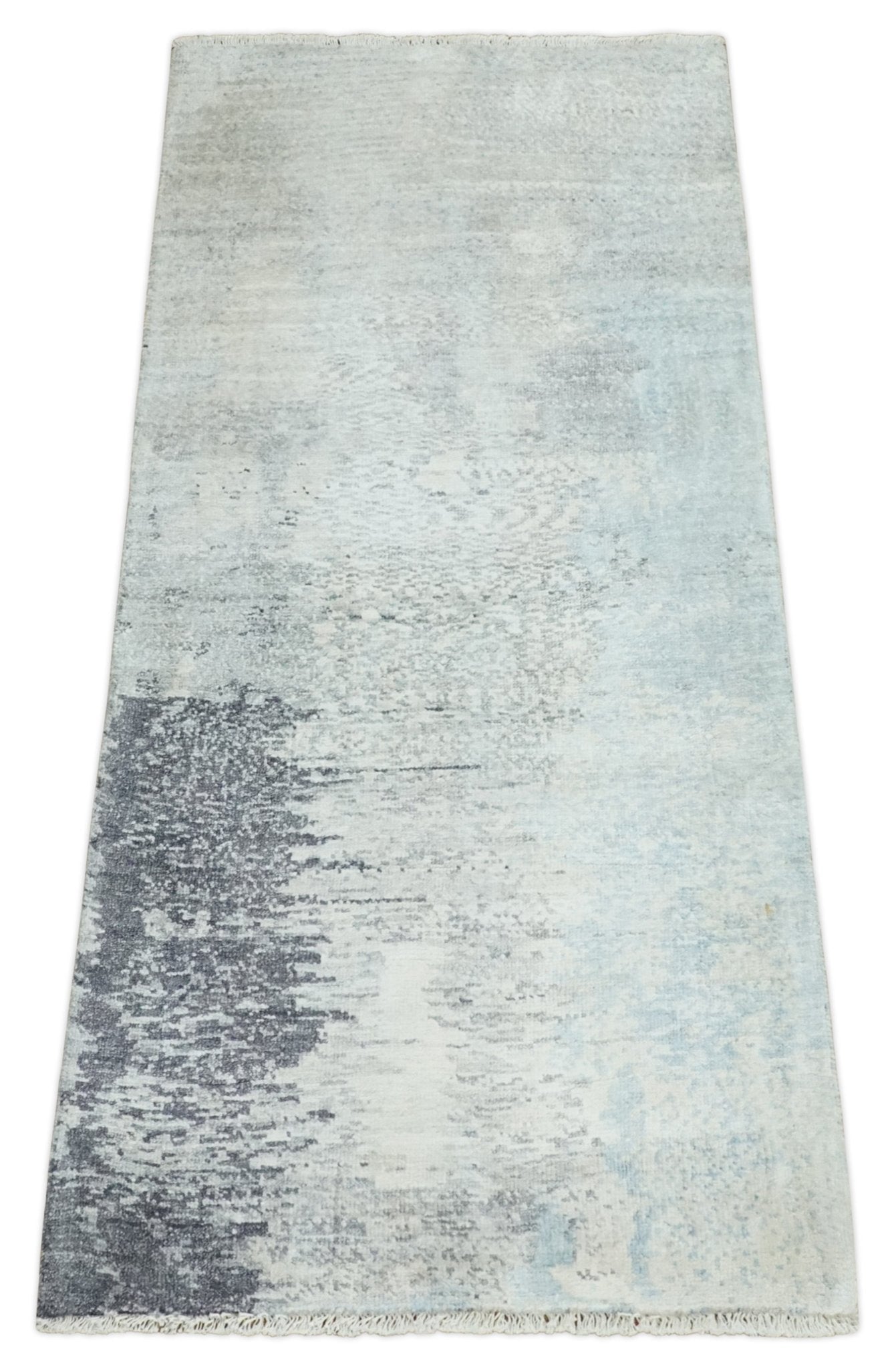 2x4 Modern Abstract Beige, Blue and Charcoal Bamboo Silk Rug| N6724 - 2x4 is backordered and will ship as soon as it is back in stock.