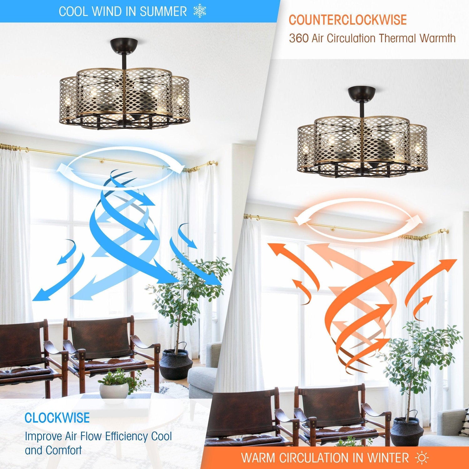 When you are looking for a fan or a light, consider this stunning chandelier in a beautiful oil-rubbed bronze lighted ceiling fan as your solution. Hidden 3 reversible fan blades are housed in brilliant wave-designed housing. 6 variable fan rotation speeds insure you find just the right comfort level. Select with ease from any location with the convenience of the included remote control.