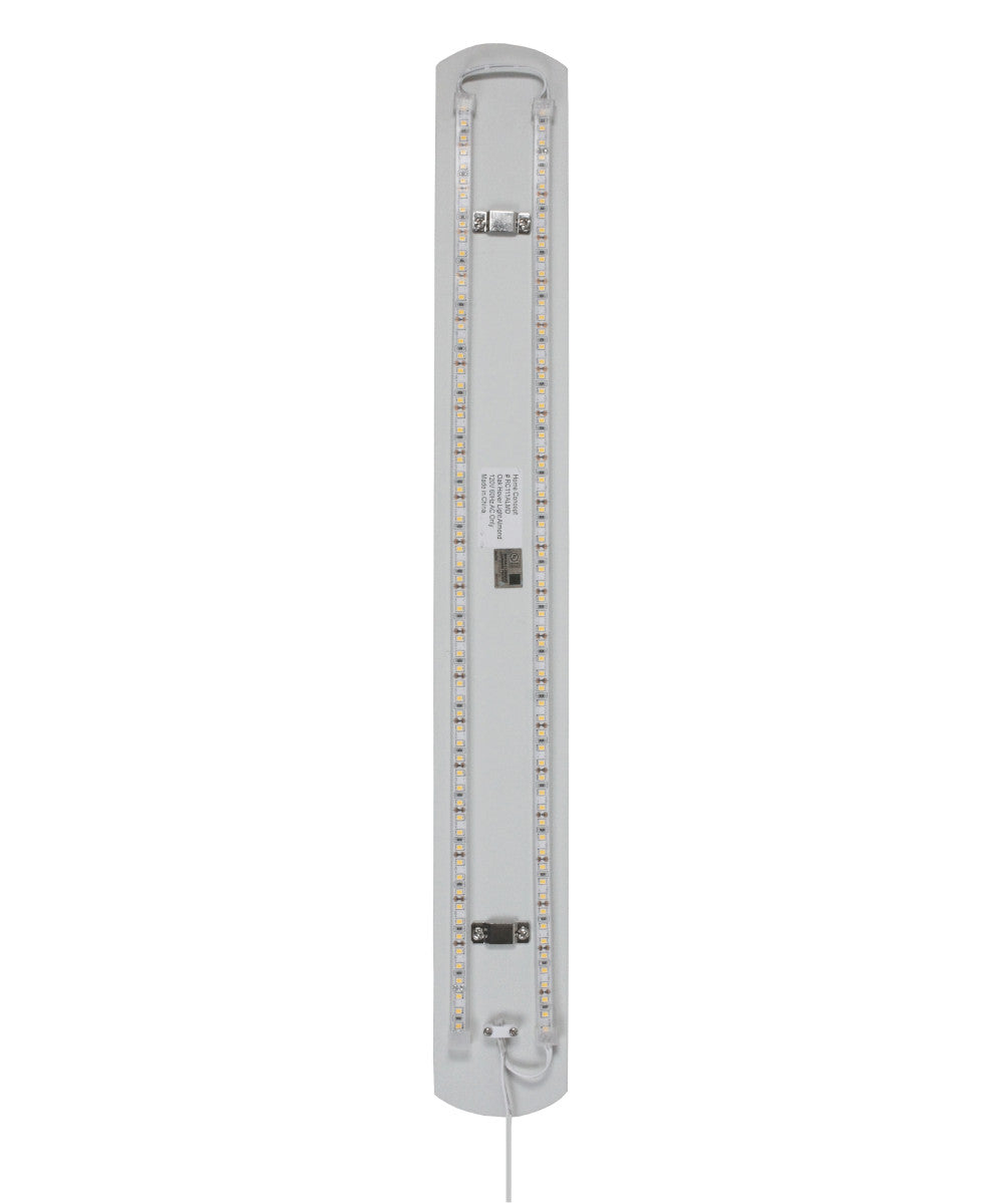 - LIFETIME LED STRIPS INCLUDED - 50,000 hr rated LED strips use only 15w, yet emit 1,500 lumens of light, (which is the equivalent of a 100w incandescent bulb.) Handy Dimmer on cord lets you adjust down to 10% power. Dimmer has memory so it turns on to the same light level you set when you turned it off. Light spectrum rating is 3,000 K, which provides warm light in the yellow range.