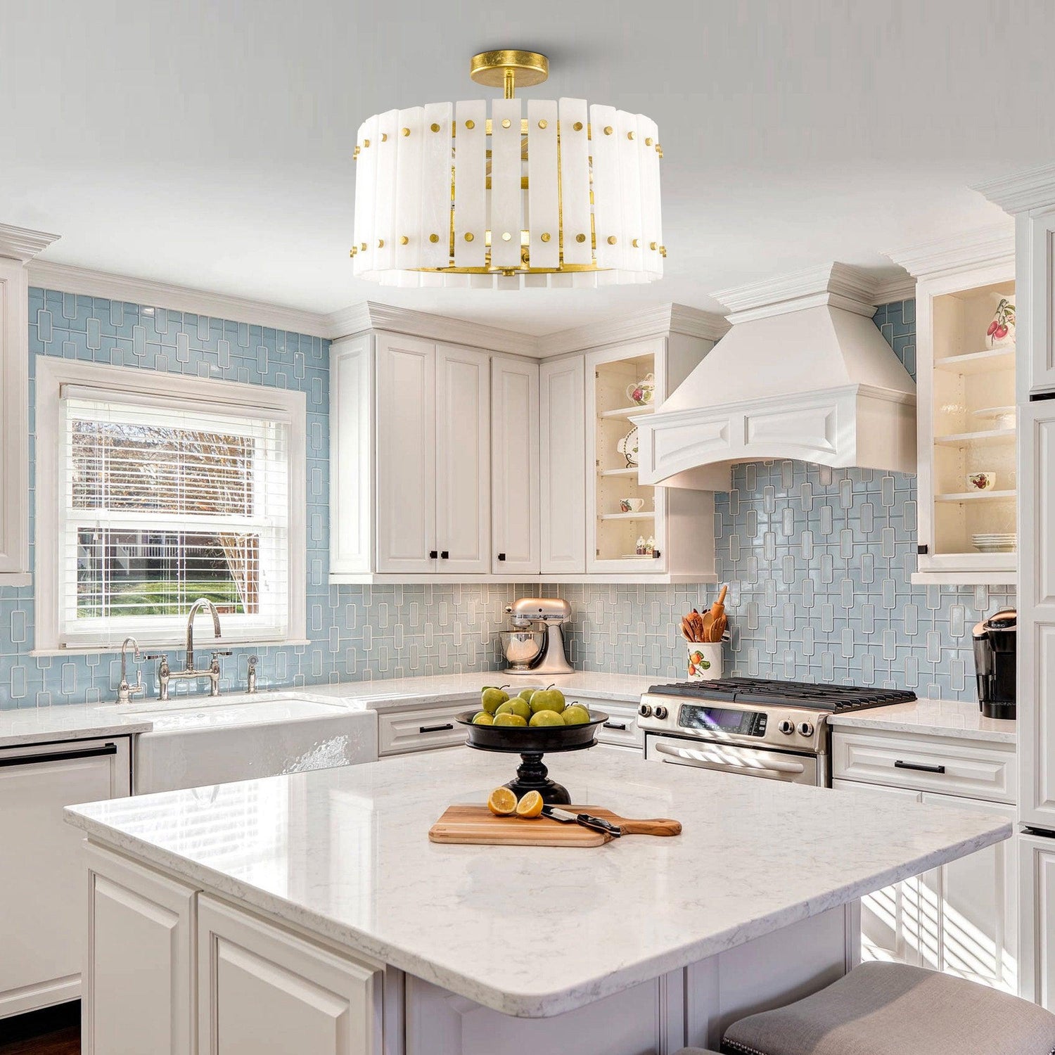 4-Light Modern Drum Marble Semi Flush Mount Ceiling Light