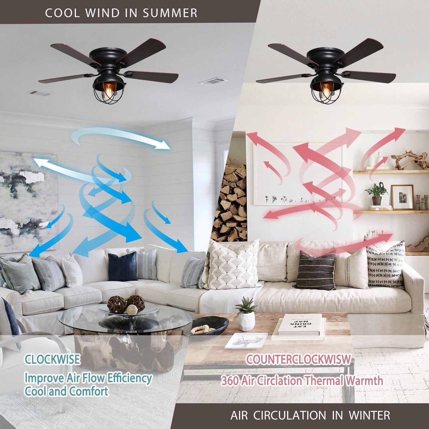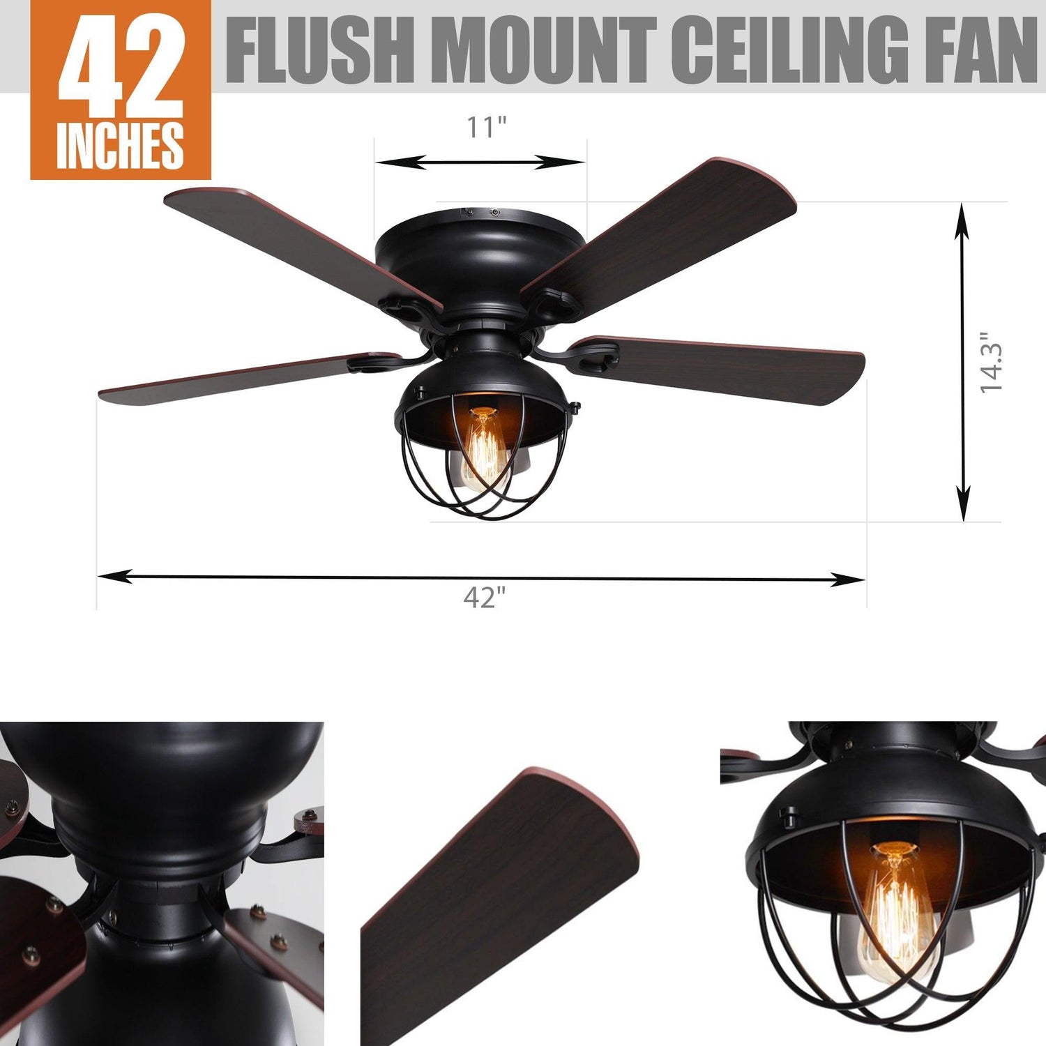 42" Traditional Flush Mount Reversible Ceiling Fan with Lighting and Remote Control