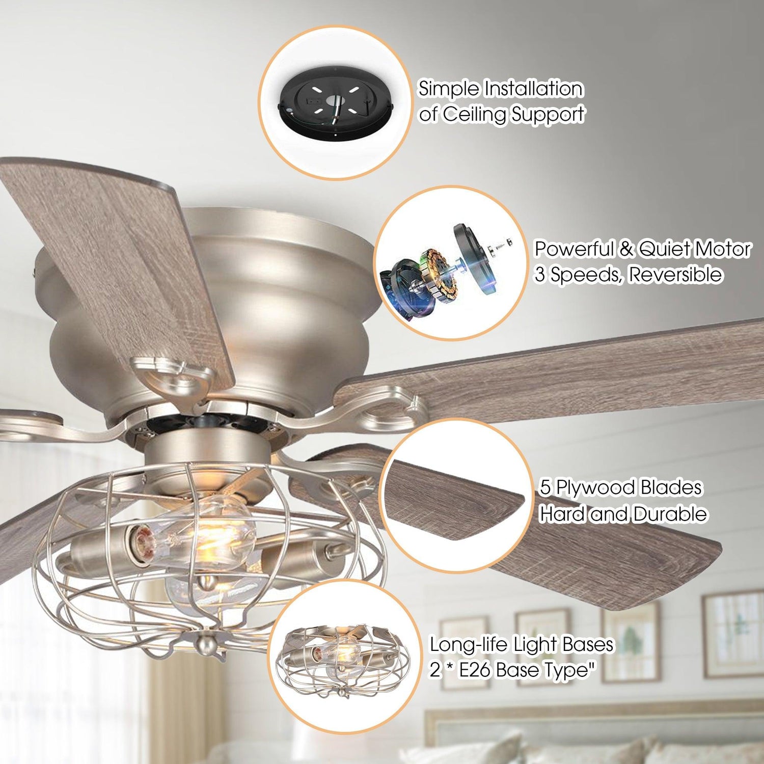 48” | Iron, Plywood | 5*Plywood Blades | 2*E26 MAX25W light bulbs(not included) | AC motor | Remote control | GA043 | 3 | Dry location |