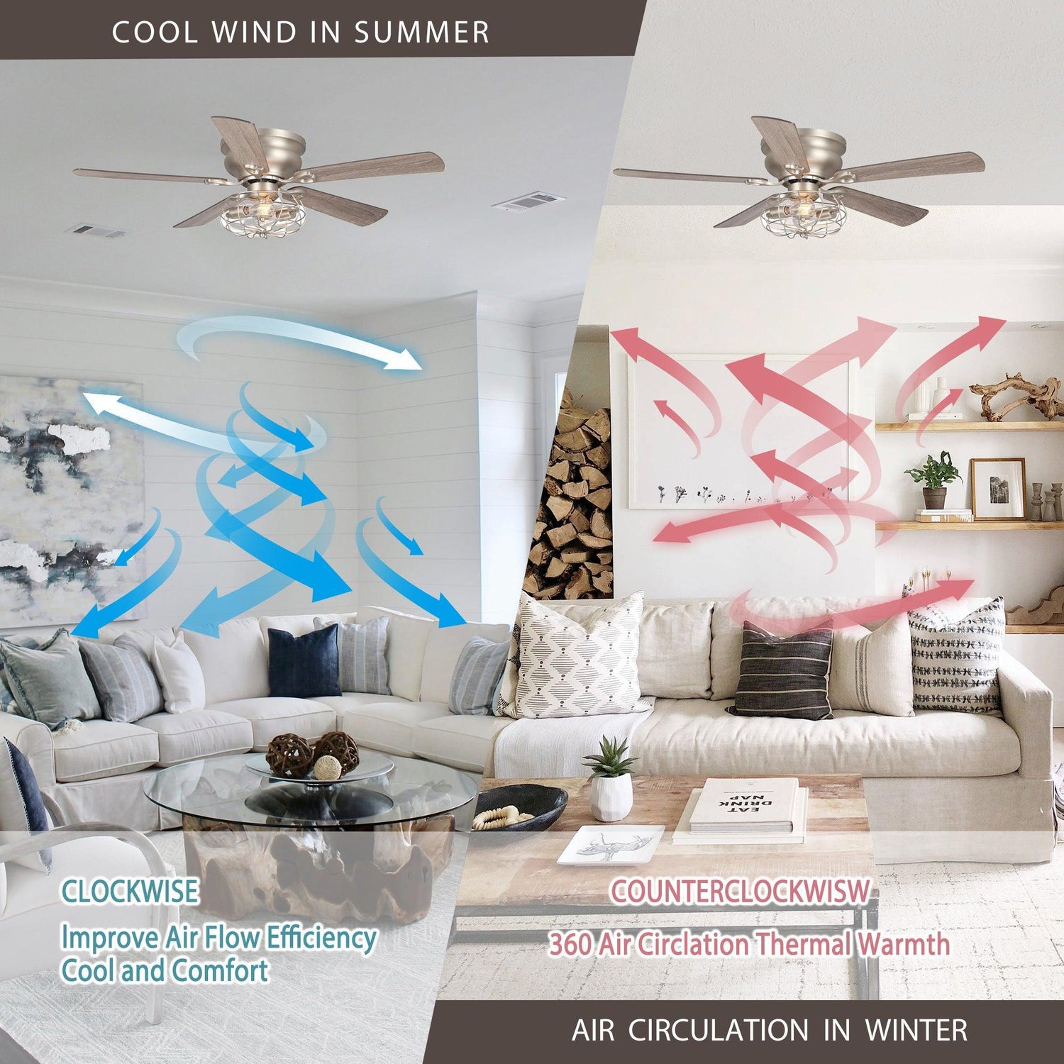 This 48 in. classic low-profile ceiling fan, features energy-efficient and easy to install, and its industrial design that will complement almost any space. Reversible blades allow you to keep things cool in the summer months and even reverse the motor to keep it warm in the winter! This 5 blades ceiling fan with remote is surely a statement piece for your kitchen, dining room, living room, bedroom, or foyer.
