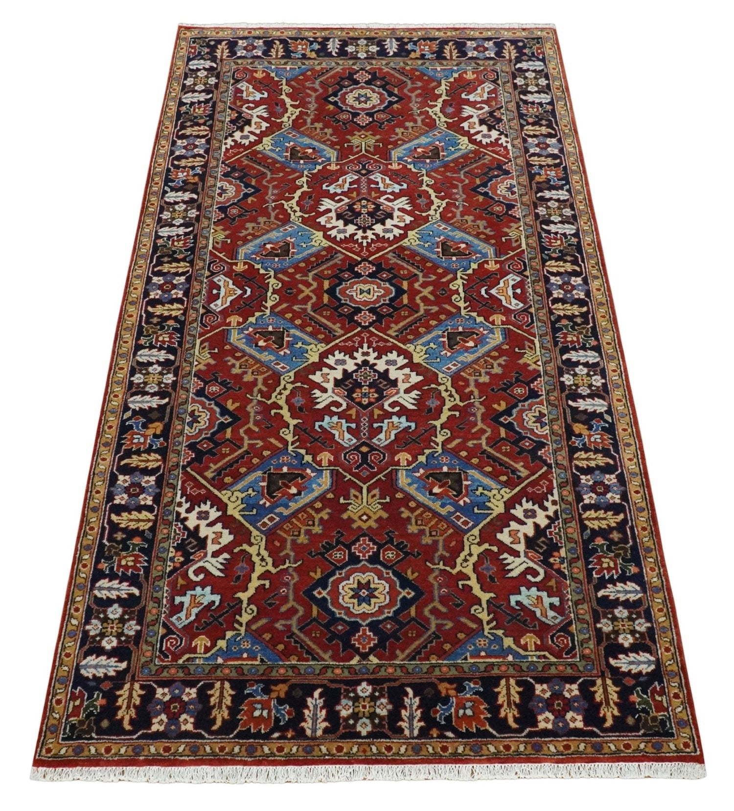 4x8 and Runner Hand Knotted Brown and Black Traditional Heriz Serapi Wool Area Rug