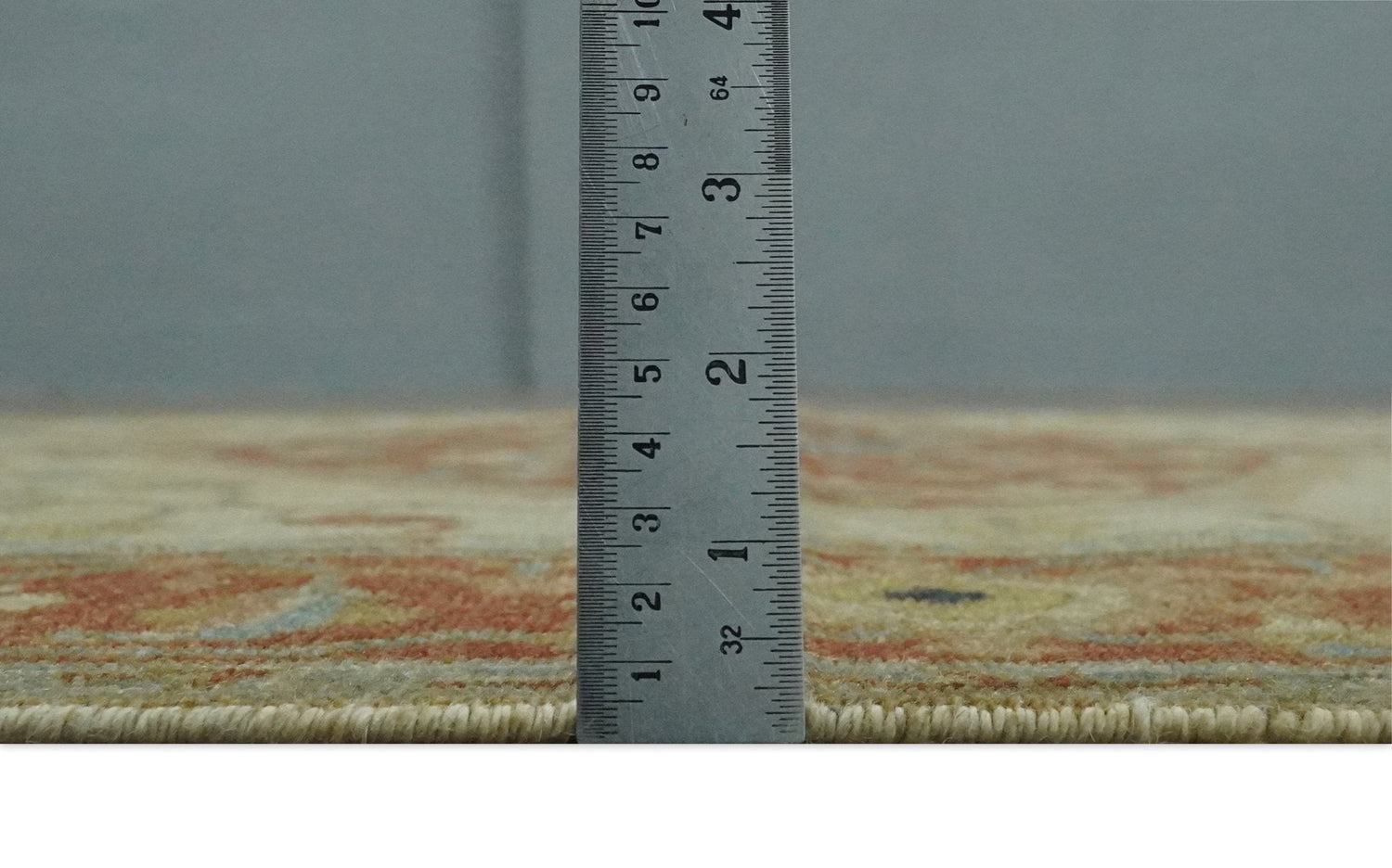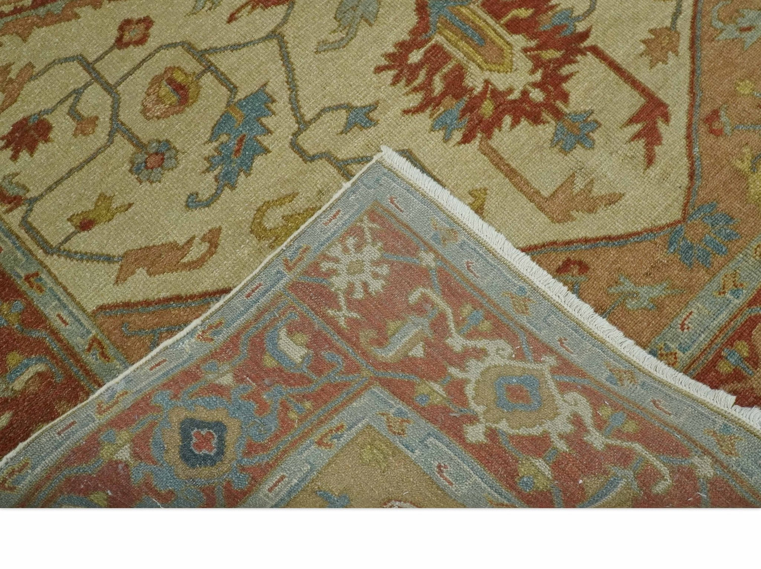5.4x8 Hand Knotted Rust, Beige and Peach Traditional Turkish Knot Heriz wool area Rug - 5.4x8 is backordered and will ship as soon as it is back in stock.