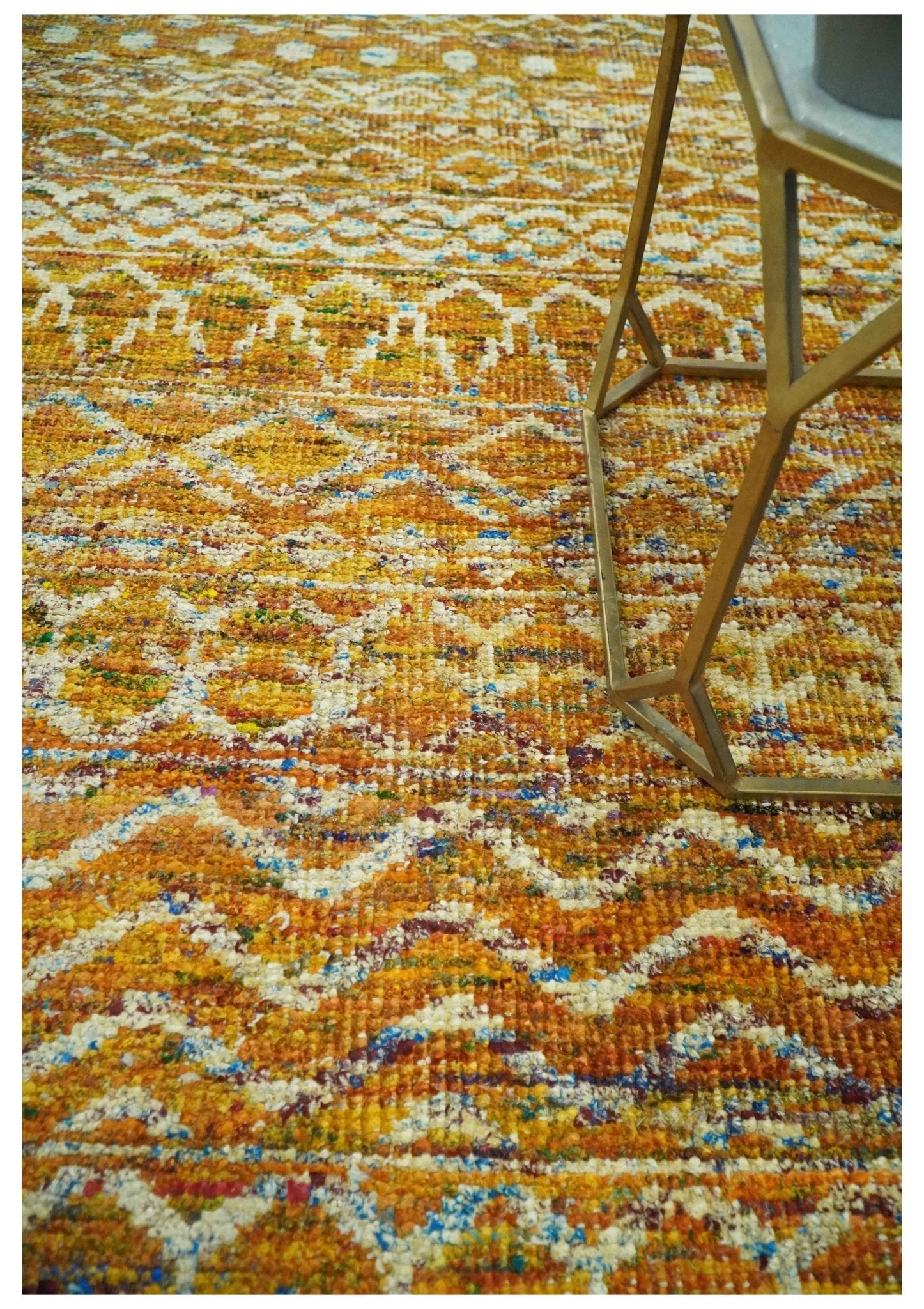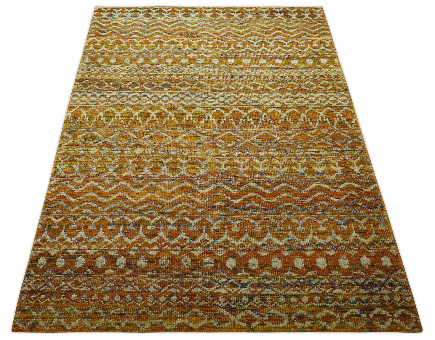 5.6x8.6 Hand Knotted Gold, Ivory and Rust Southwestern Tribal Trellis wool Area Rug