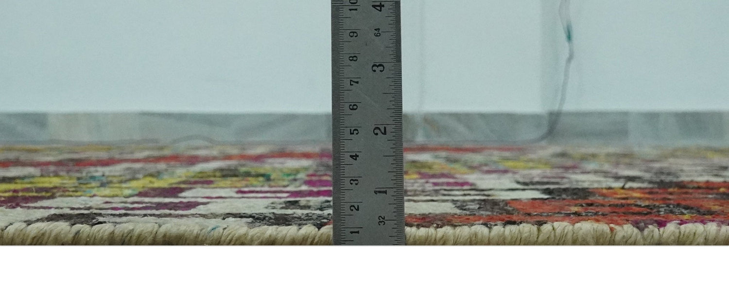 5.6x8.6 Ivory, Rust, Black and Mustard Greek key design Hand Knotted wool area rug - 5.6x8.6 is backordered and will ship as soon as it is back in stock.
