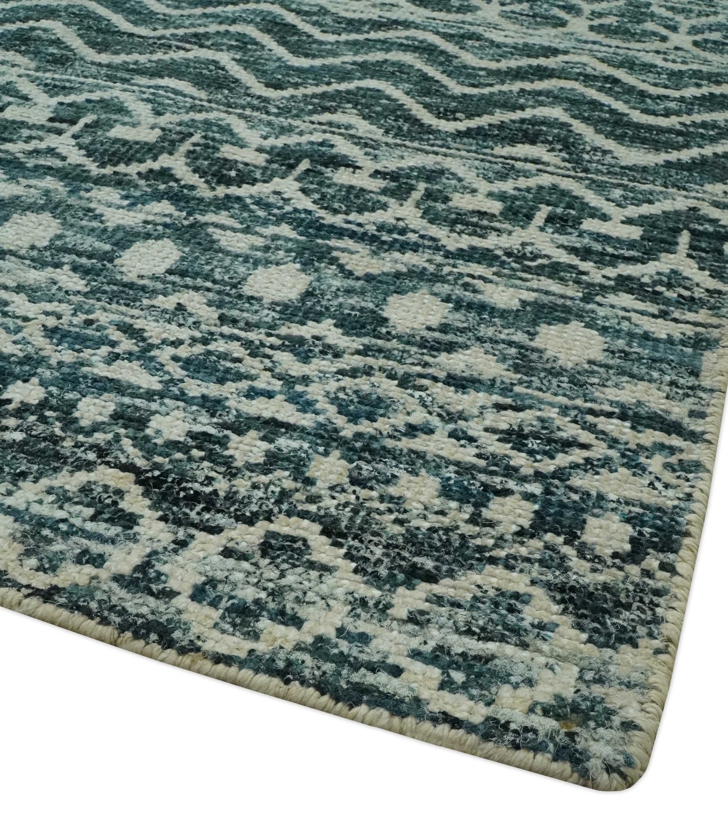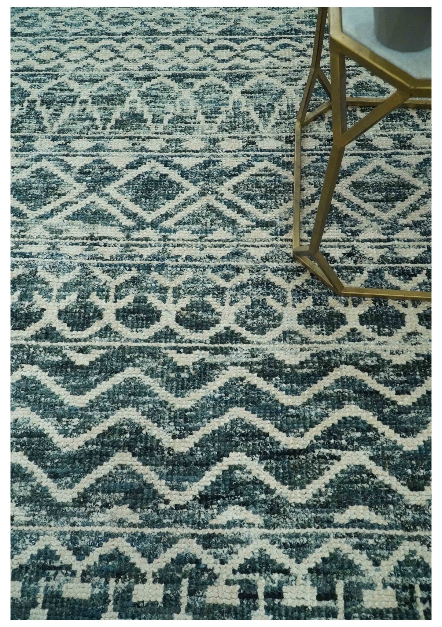 5.6x8.6 Teal Green and Beige Hand Knotted Southwestern Tribal Trellis wool Area Rug - 5.6x8.6 is backordered and will ship as soon as it is back in stock.