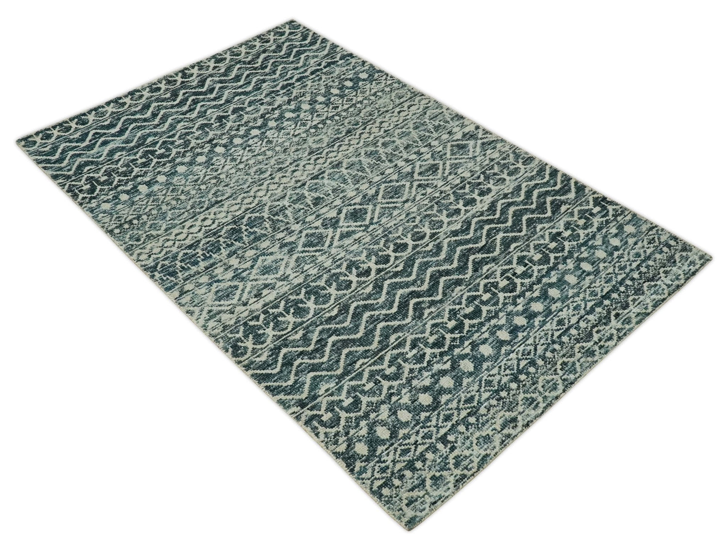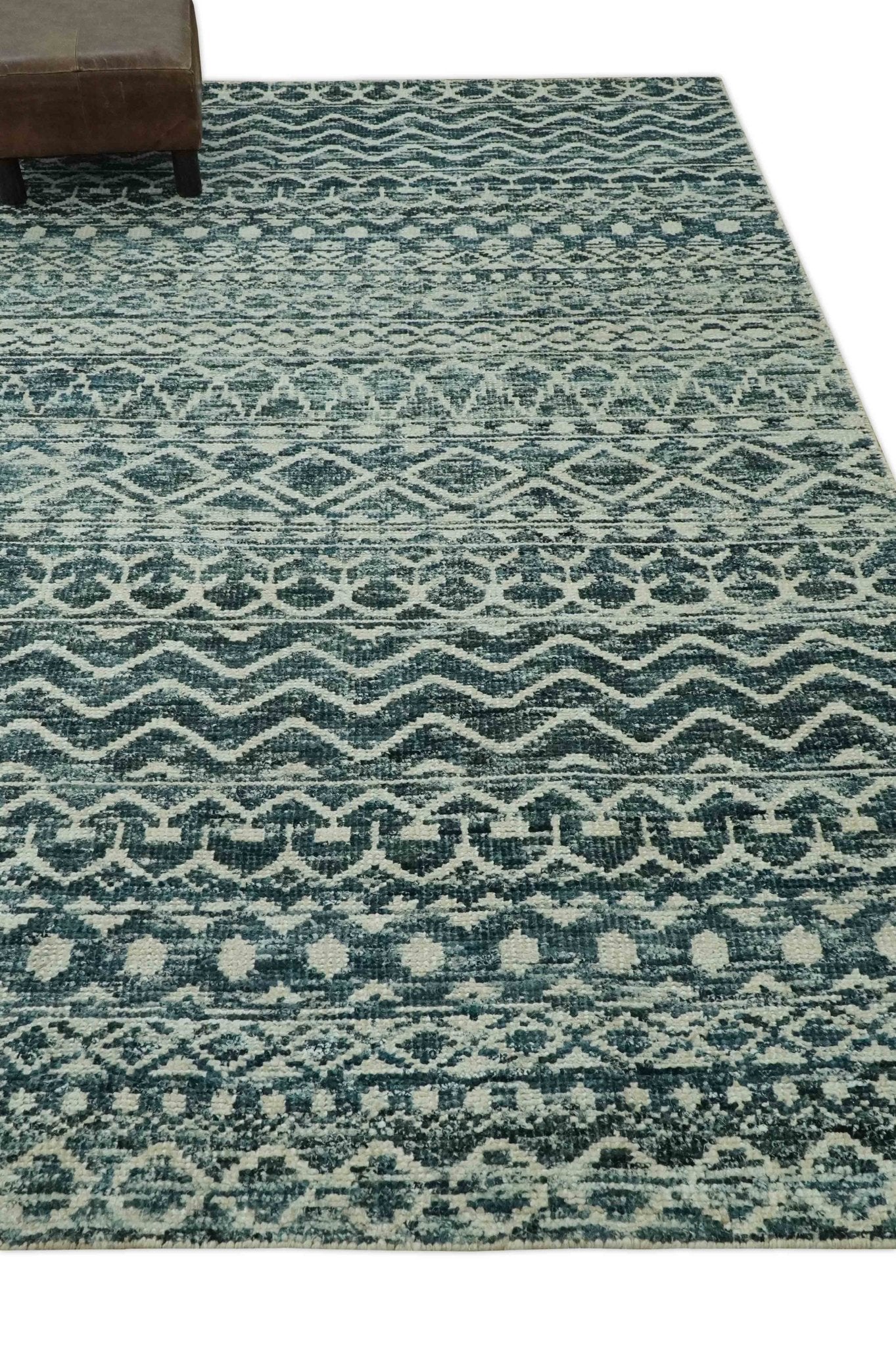 5.6x8.6 Teal Green and Beige Hand Knotted Southwestern Tribal Trellis wool Area Rug