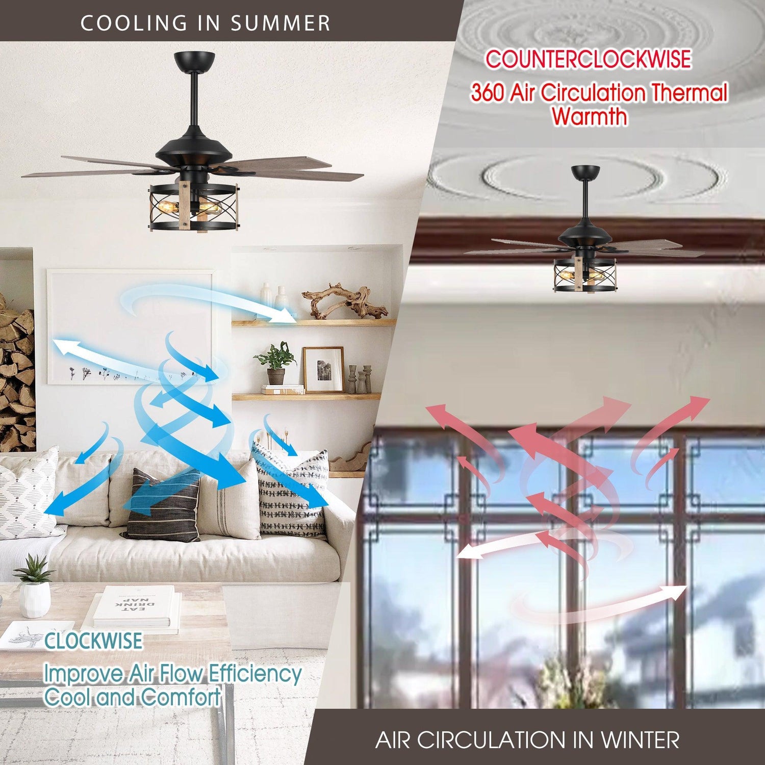 Add industrial style to your home with this 52 in. ceiling fan, which offers up metal line iron frame lamps to protect the exposed light sources. And the black finish cage-inspired shade with wood frame highlights its exposed bulbs for factory-chic flair. Both functions of modern lamps and fans make it very ideal to use in the living room, bedroom, and anywhere else.