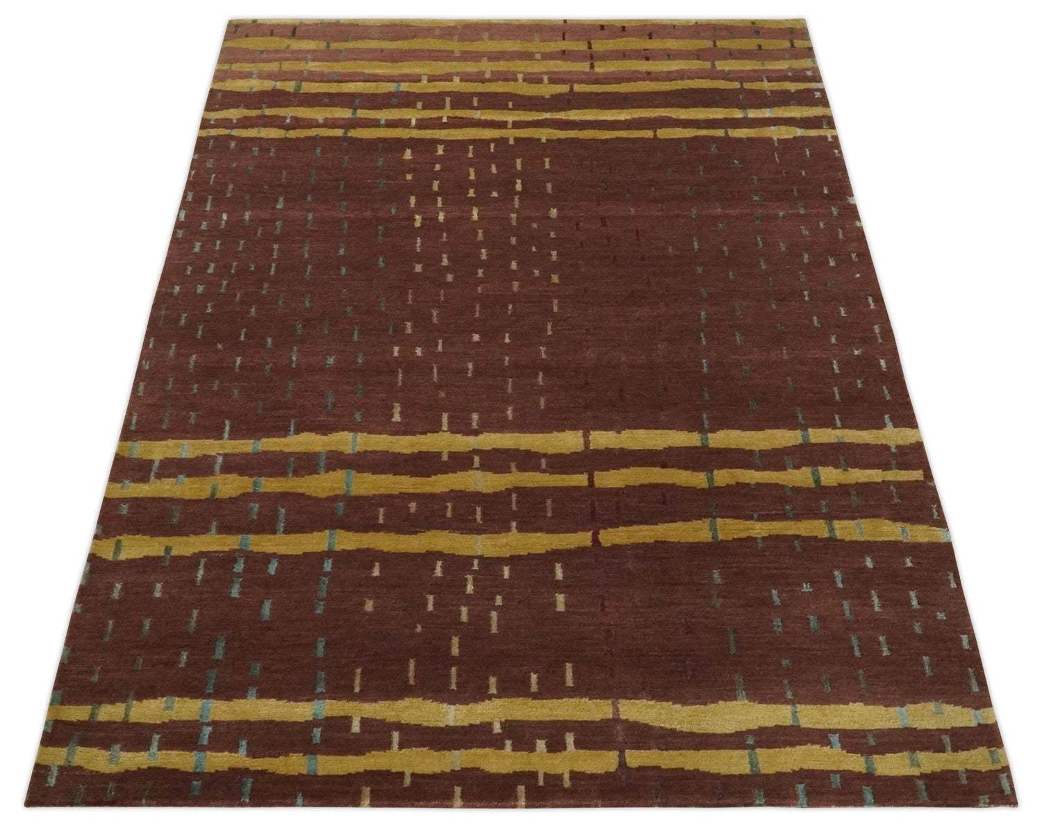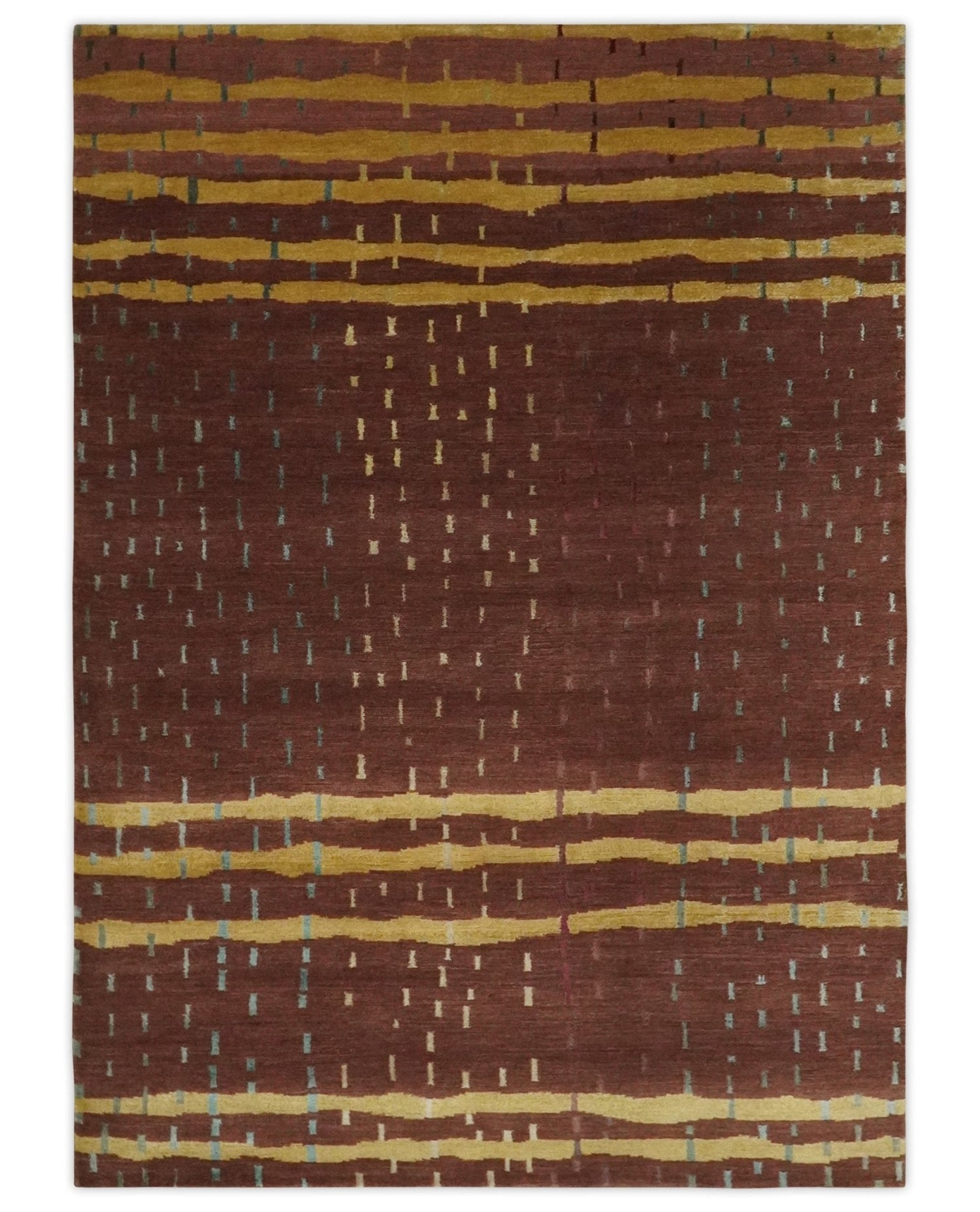 5x7 Brown and Gold Stripes Pattern Hand knotted Wool and Art Silk Area Rug