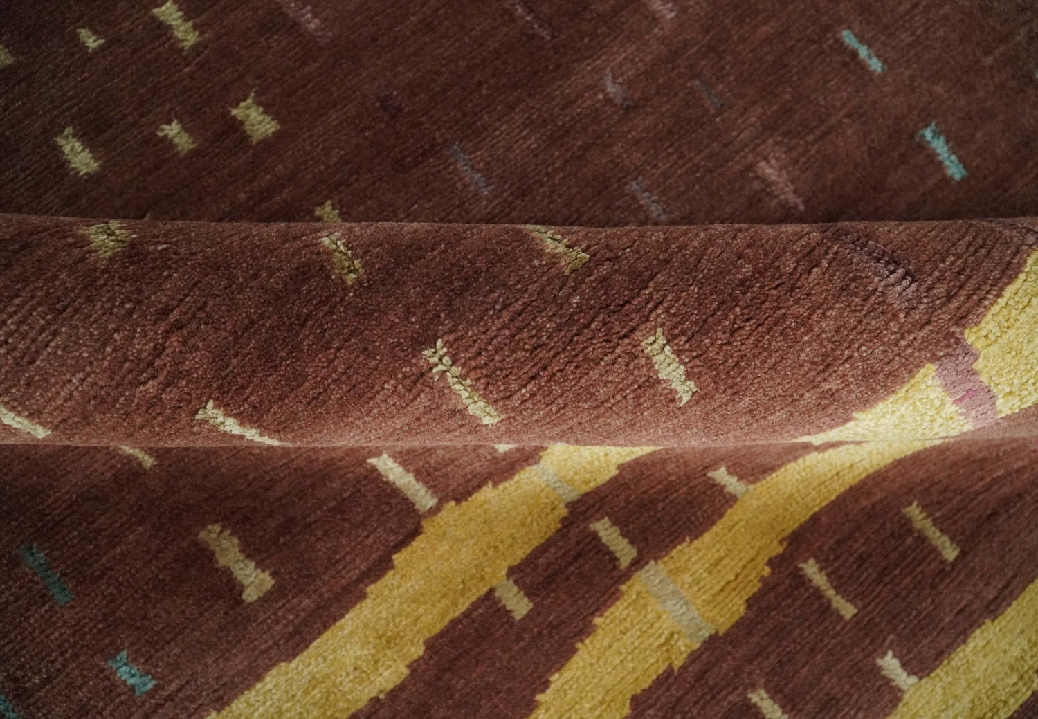 This exquisitely designed wool and art silk blend rug is sure to add sophistication and texture to your living space. Featuring a brown and gold striped pattern and meticulously hand-loomed for superior quality, this rug is perfect for any décor.