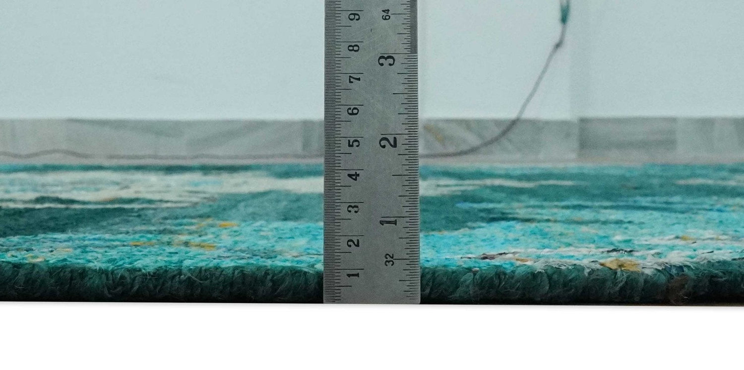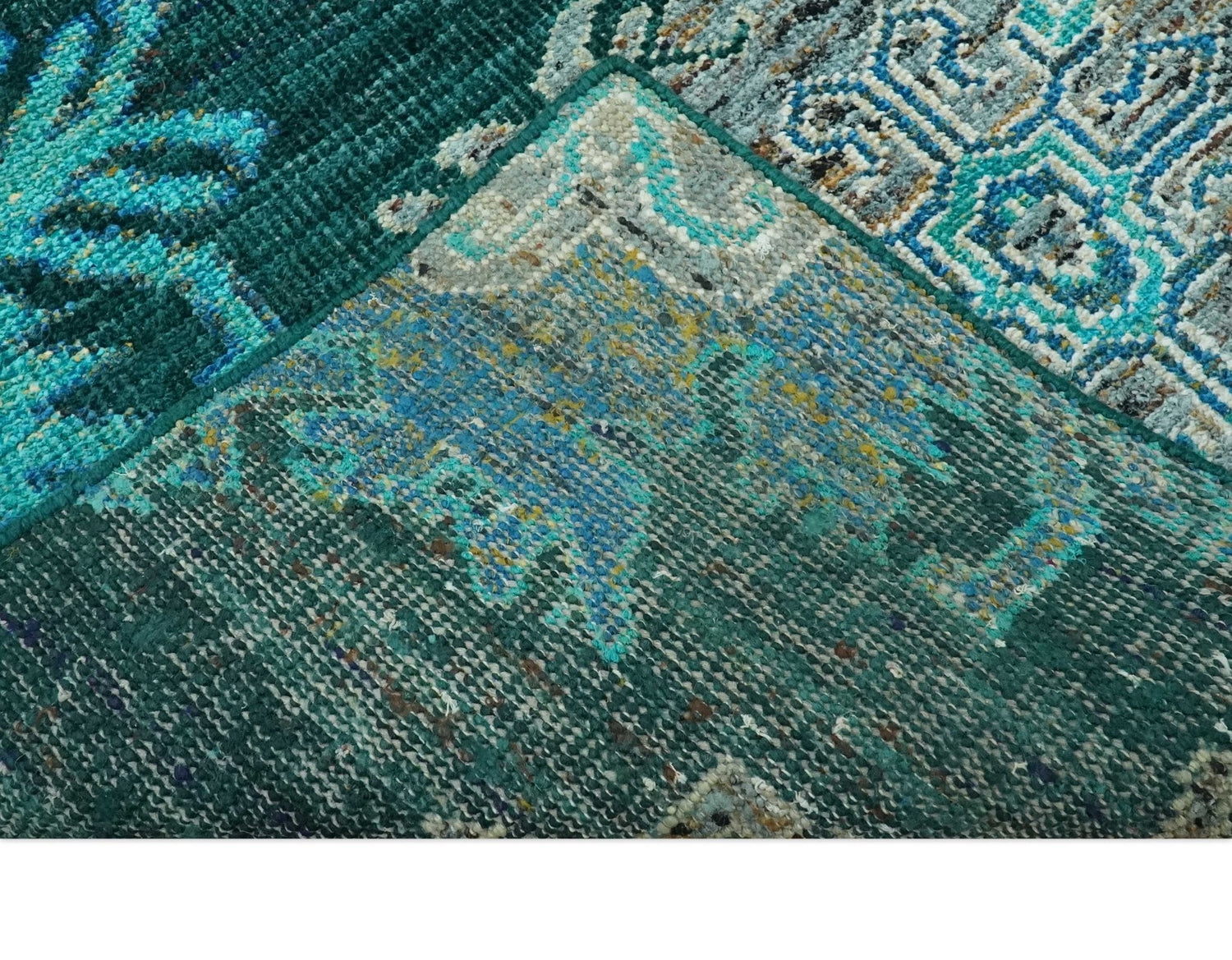 5x8 Green, Ivory and Blue Traditional Large design hand knotted wool area rug - 5x8 is backordered and will ship as soon as it is back in stock.