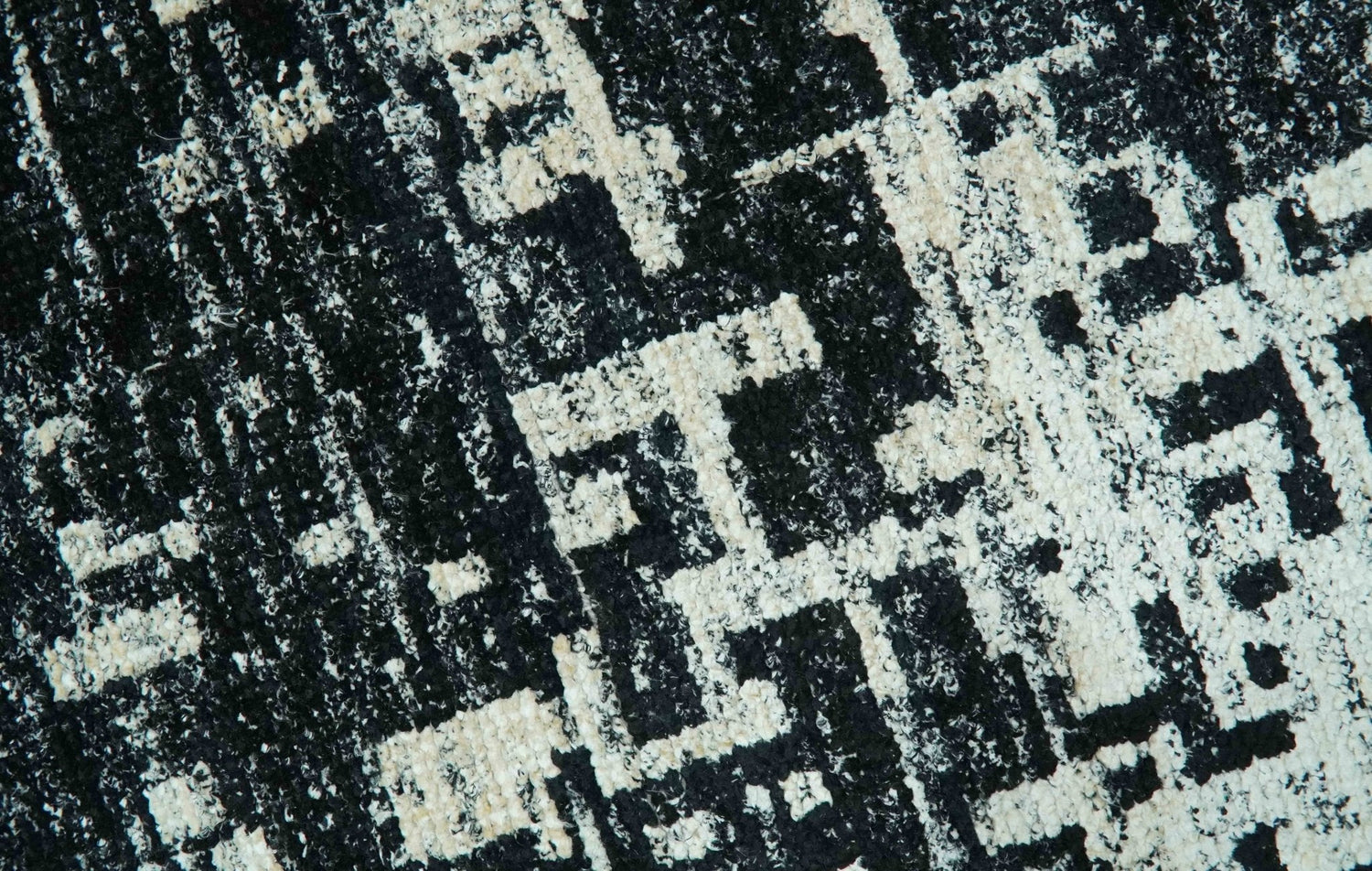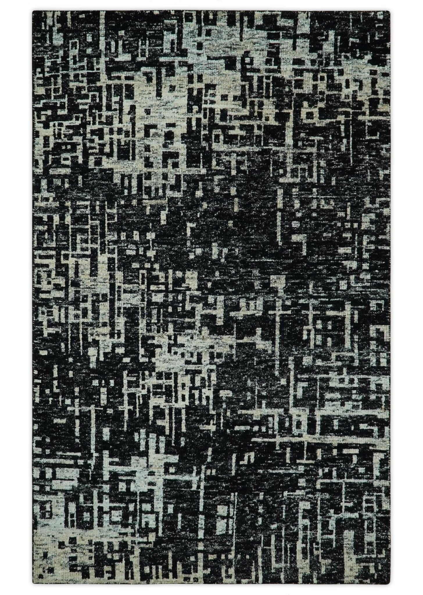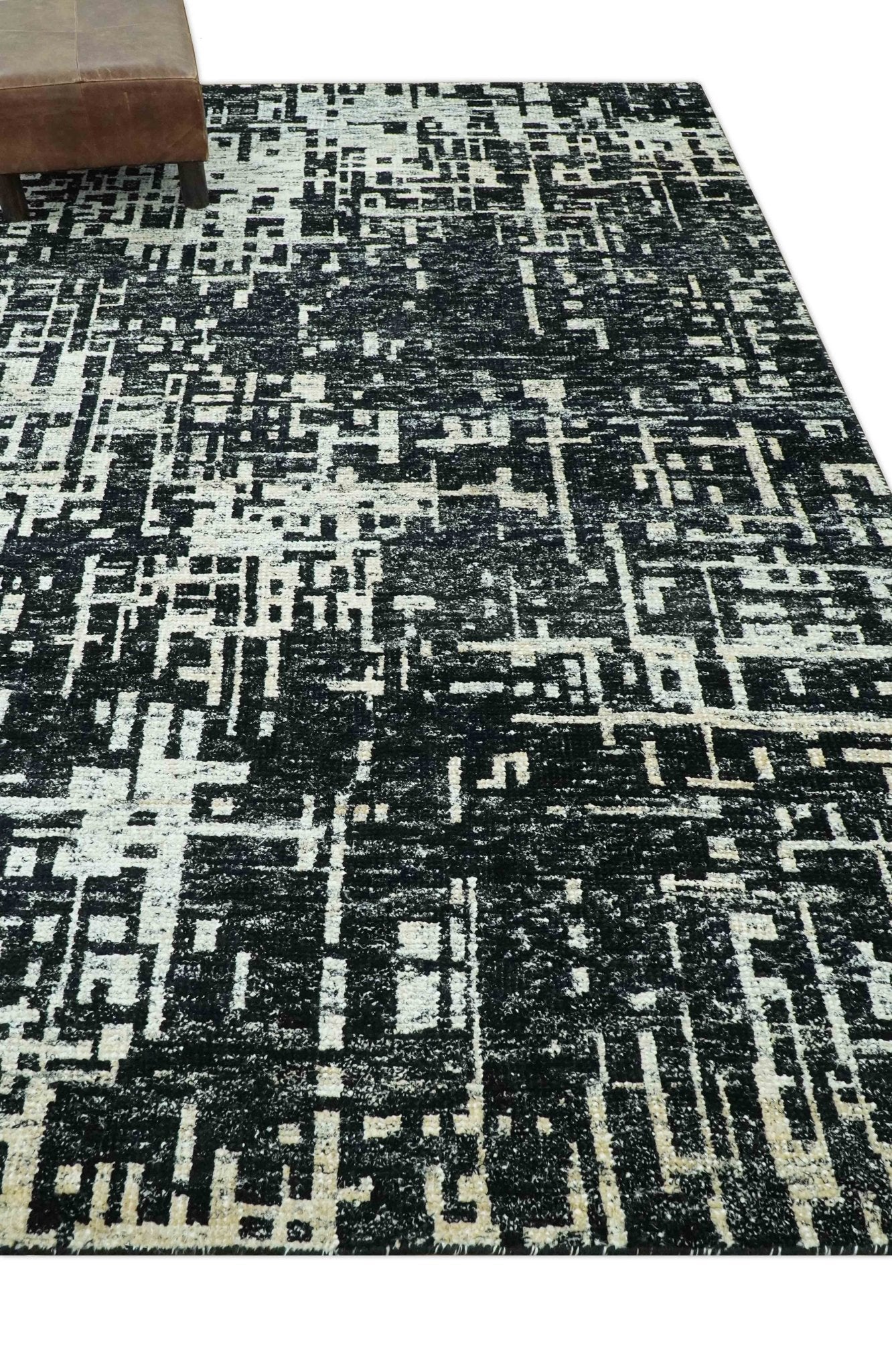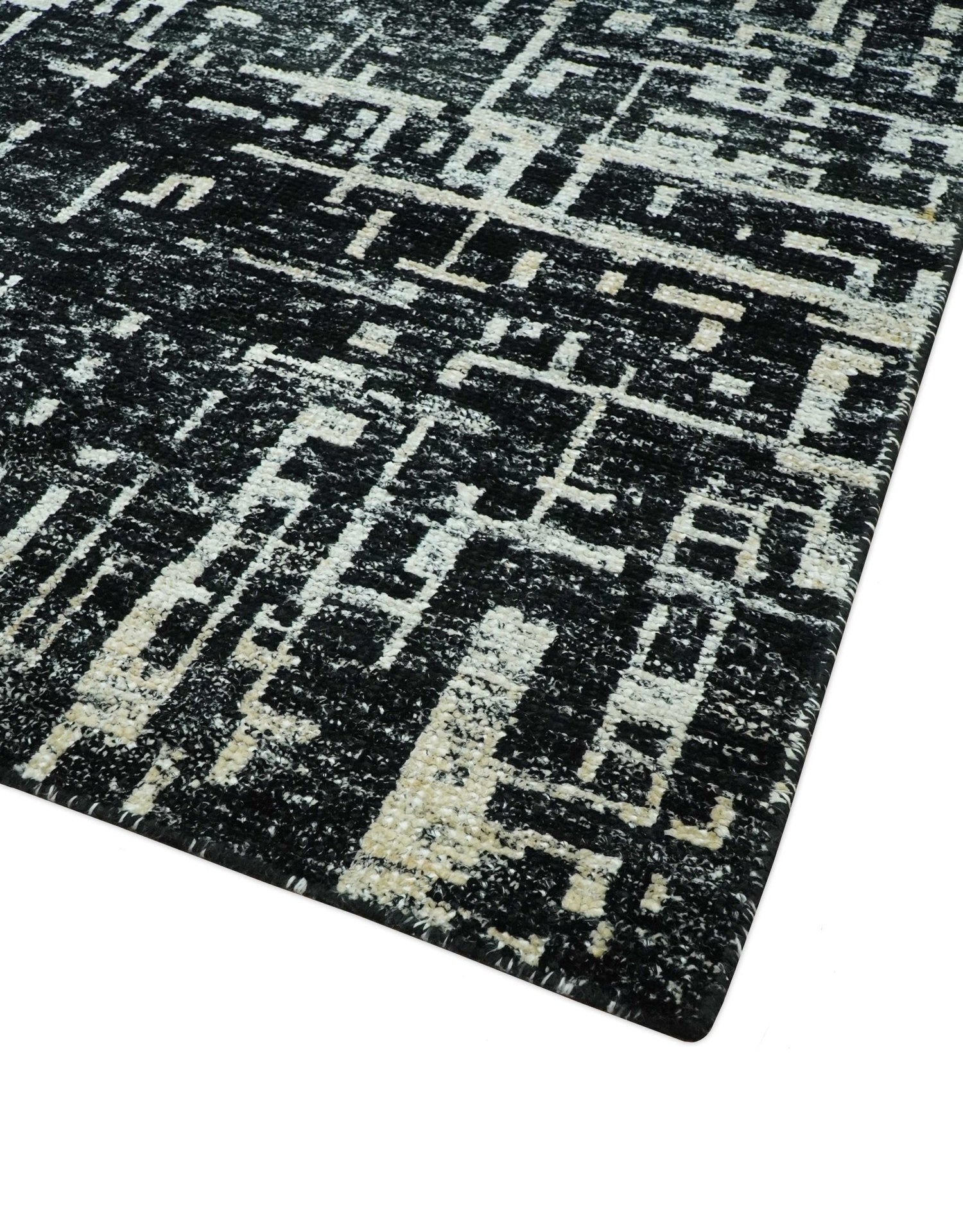 5X8 Hand Knotted Black and Ivory Modern Abstract Contemporary Recycled Silk Area Rug