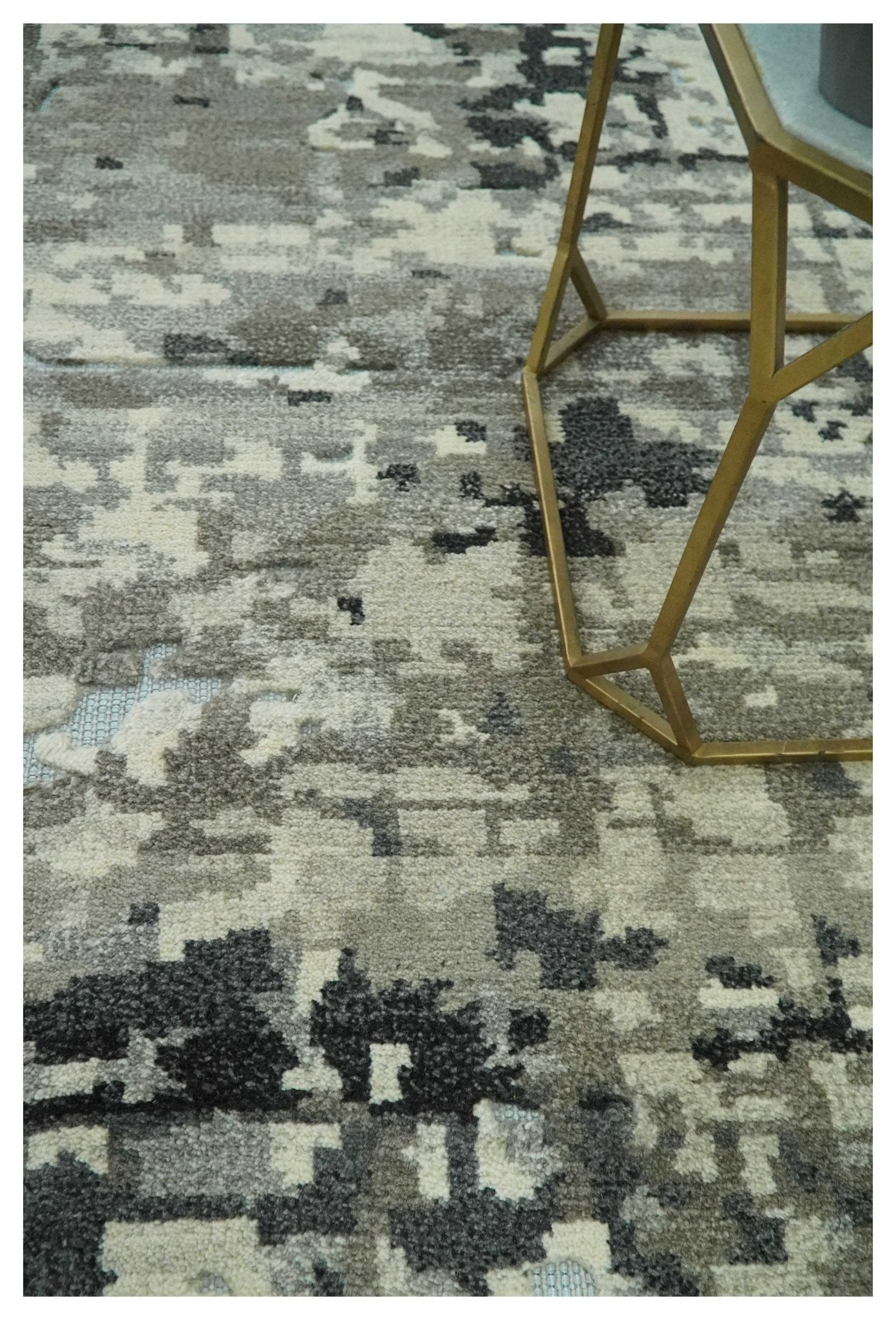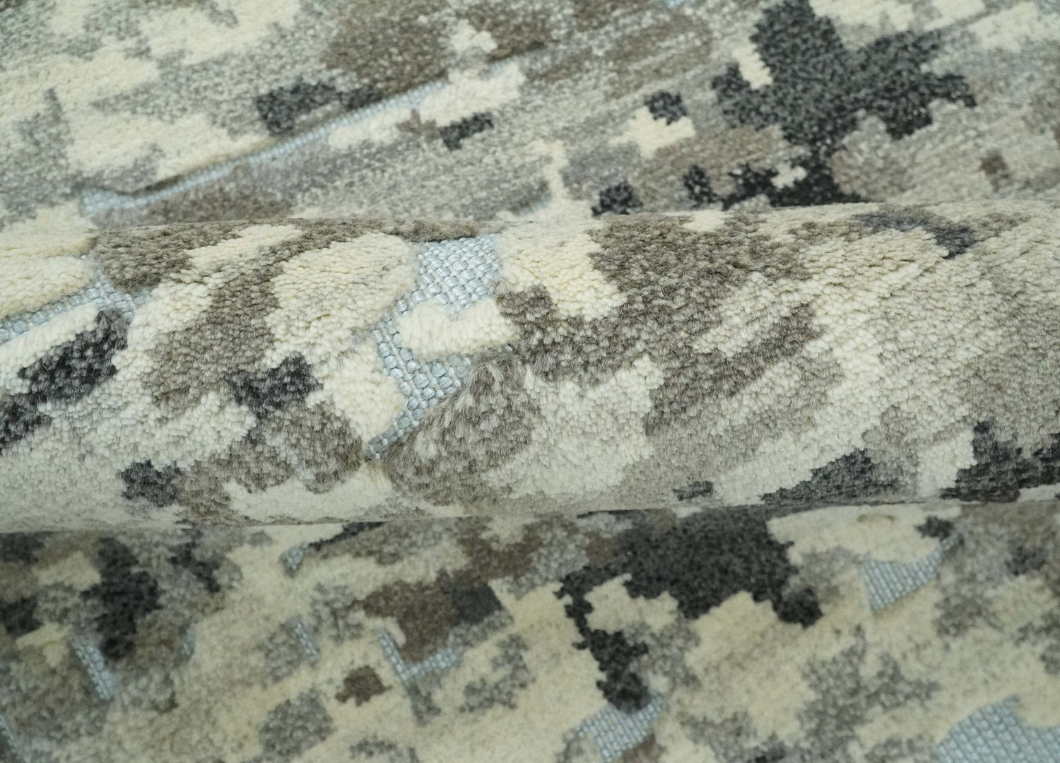5x8 hand knotted Modern Abstract Beige, Silver, Taupe and Charcoal wool Area Rug