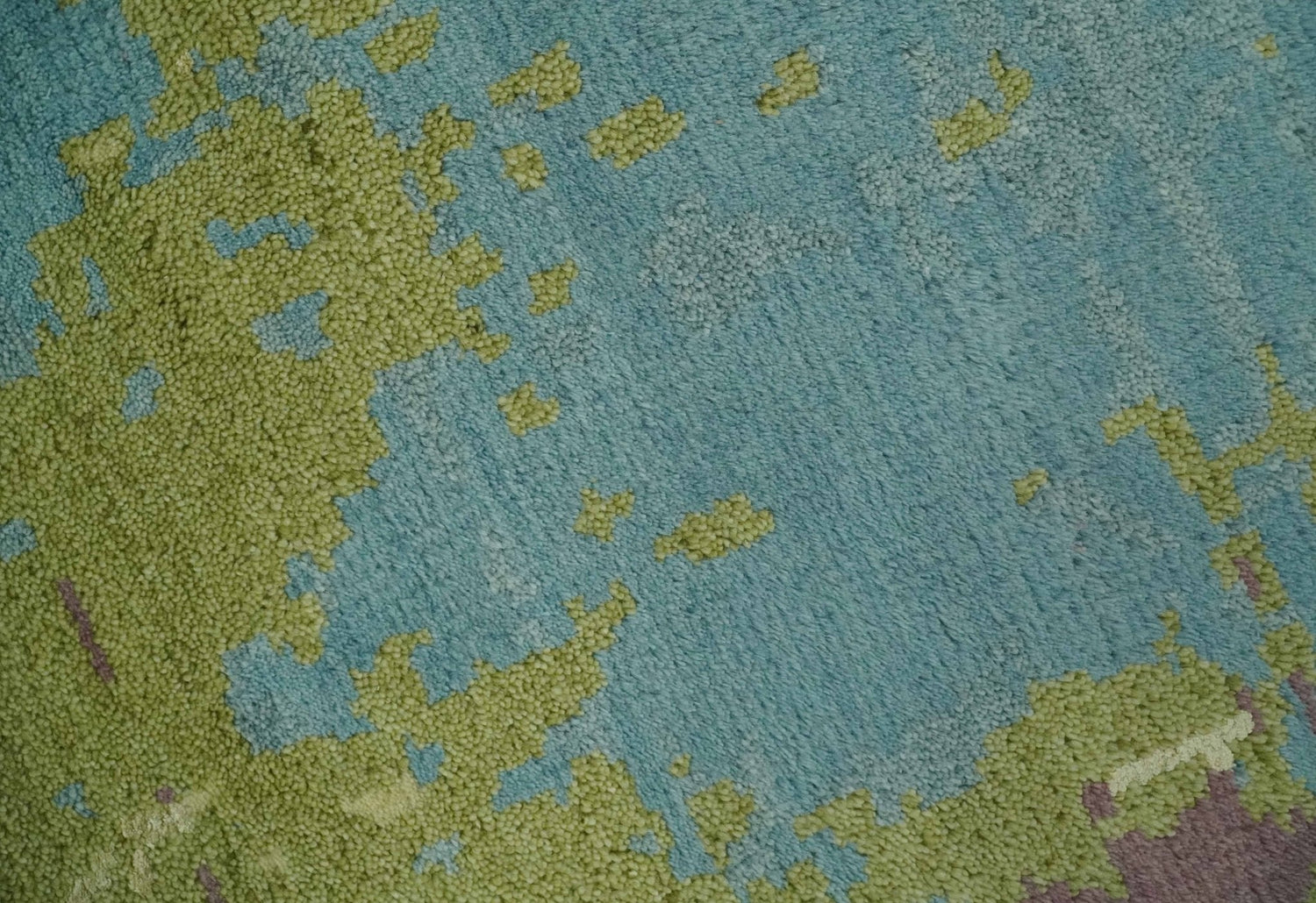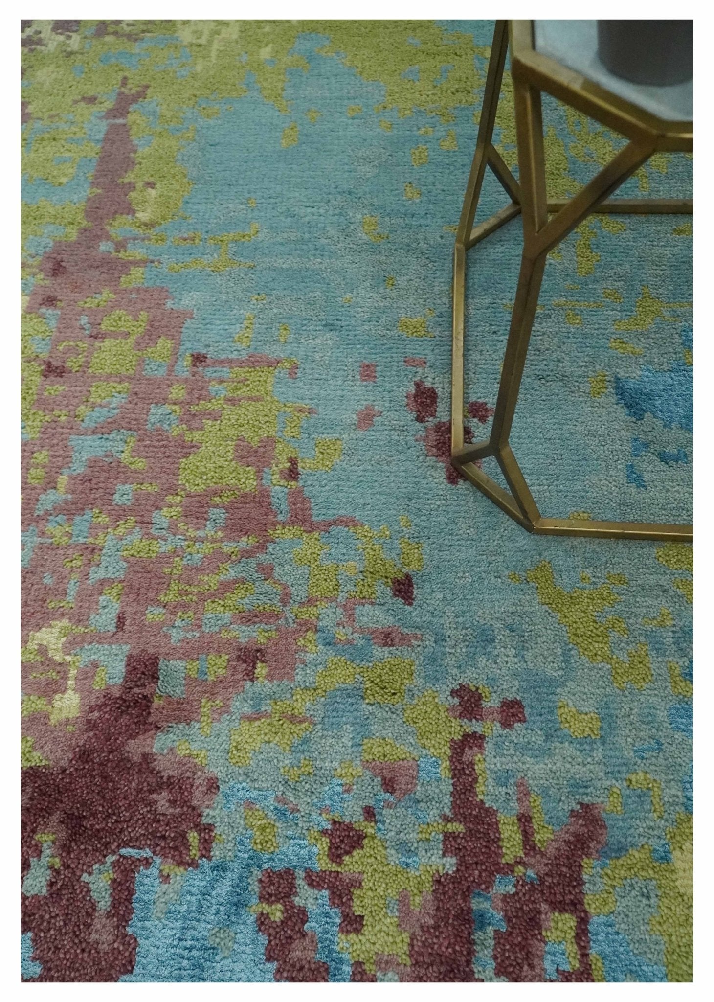 5x8 Modern Abstract Aqua, Olive and Brown Hand Knotted wool Area Rug