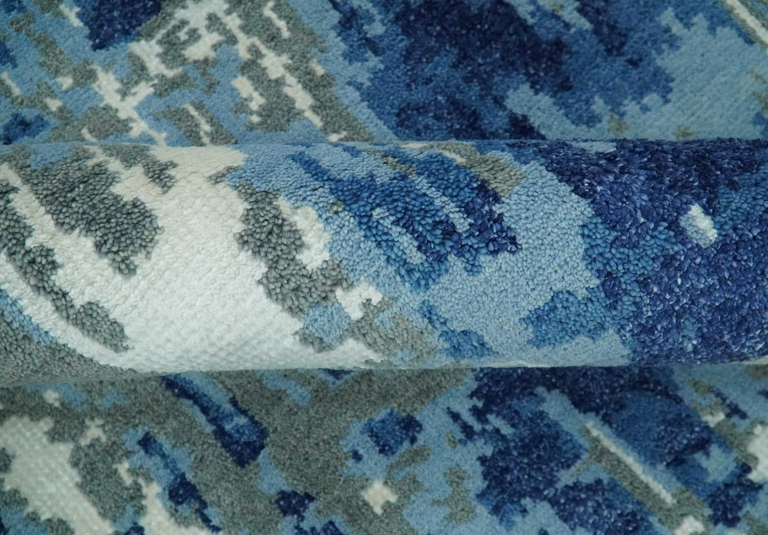Expertly crafted, this Hand-Knotted 5x8 Blue, Gray, and Ivory Modern Abstract Rug adds a touch of sophistication to any room. Made with high-quality wool, it provides both style and durability. The intricate hand-knotted details and modern design make it a perfect addition to any space.