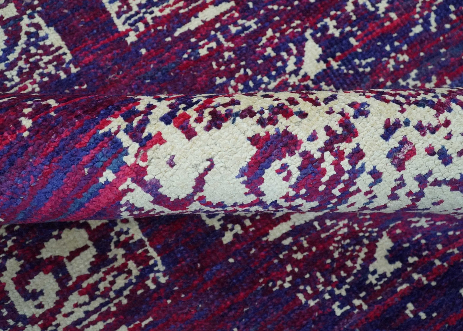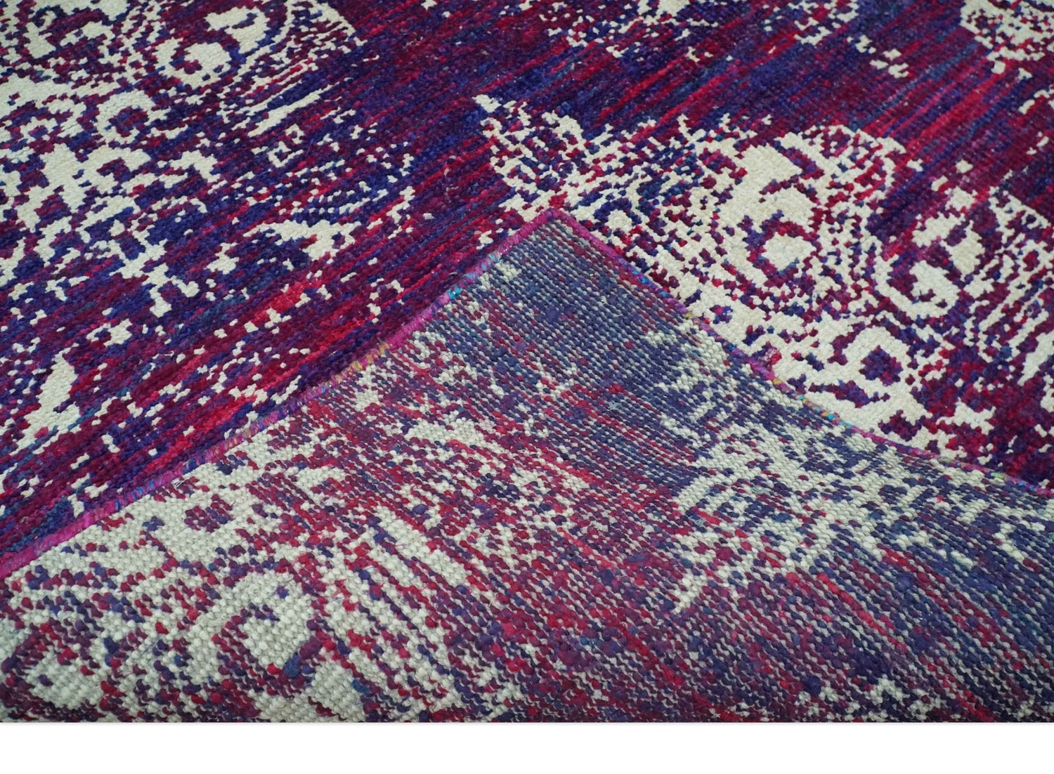 5x8 Purple, Maroon and Ivory Traditional Large Ikat Design Hand Knotted wool Area Rug - 5x8 is backordered and will ship as soon as it is back in stock.
