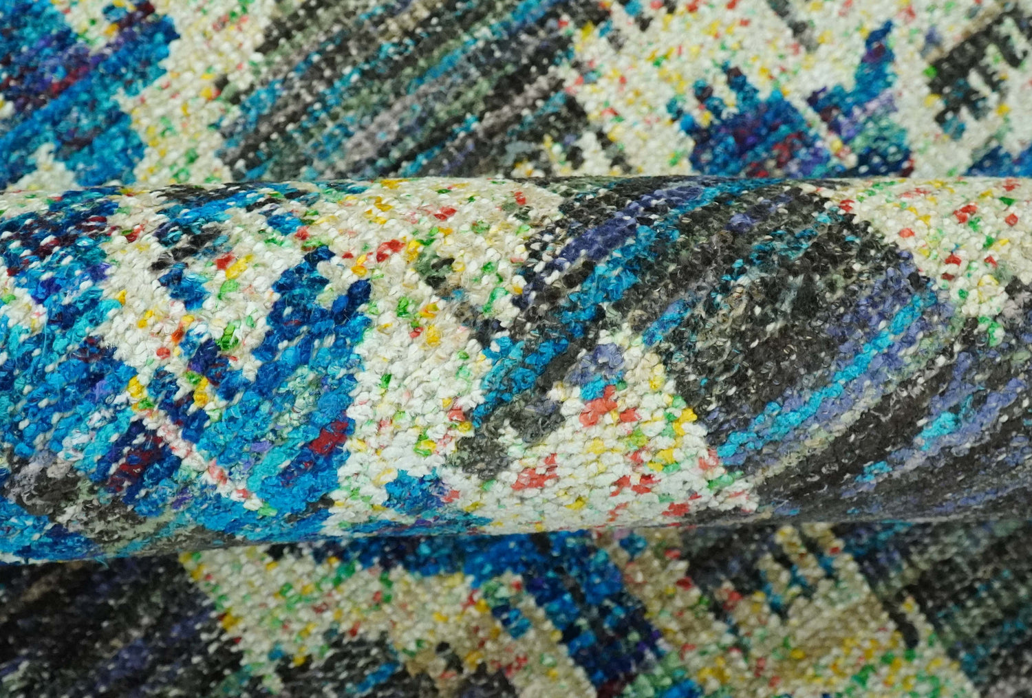 5x8 Traditional Ikat design Charcoal, Blue and Beige Hand knotted wool area rug - 5x8 is backordered and will ship as soon as it is back in stock.