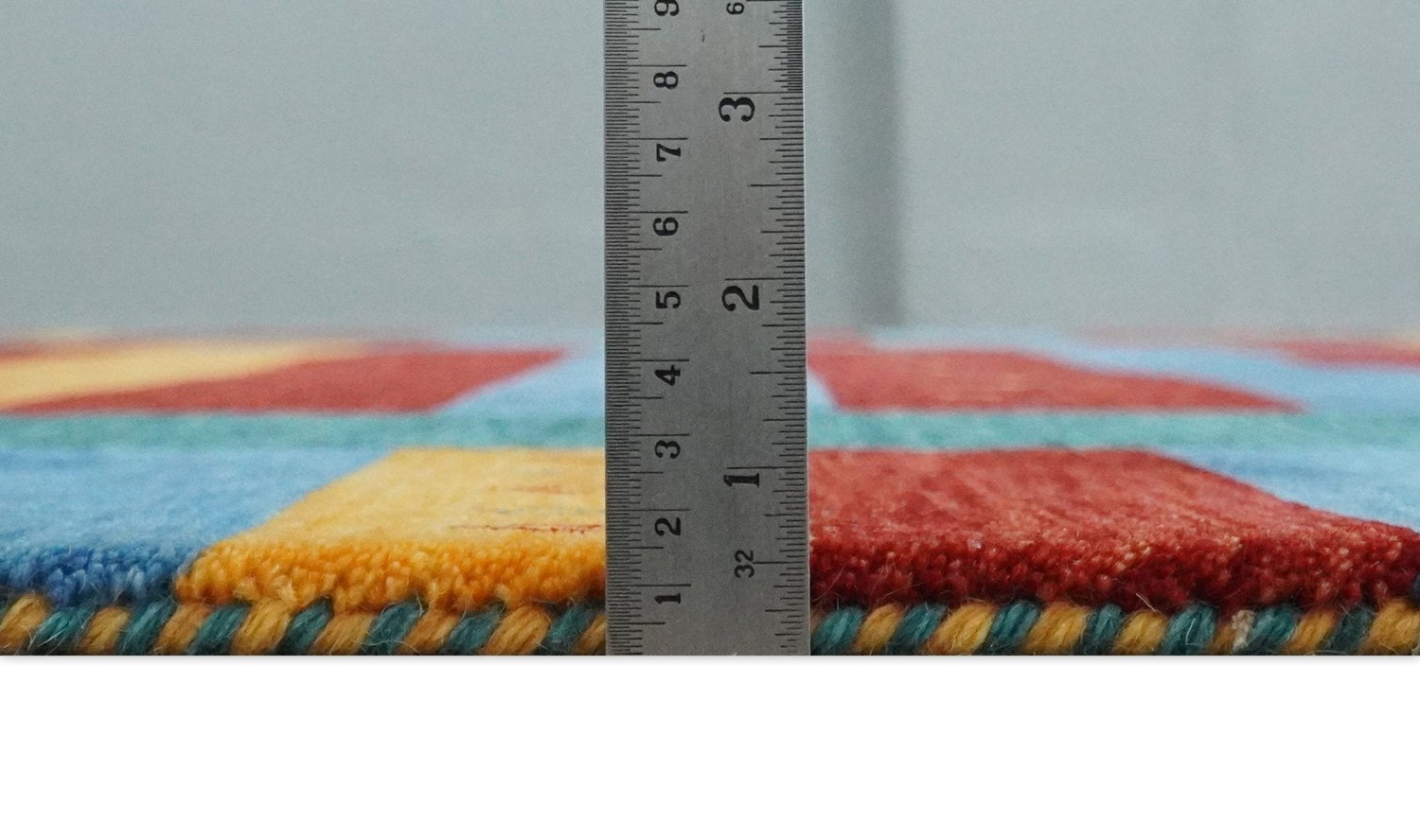 5x8 Vibrant Red, Blue, Yellow and Green Striped Wool Hand Woven Southwestern Lori Rug | KNT17 - 5.8x7.10 is backordered and will ship as soon as it is back in stock.