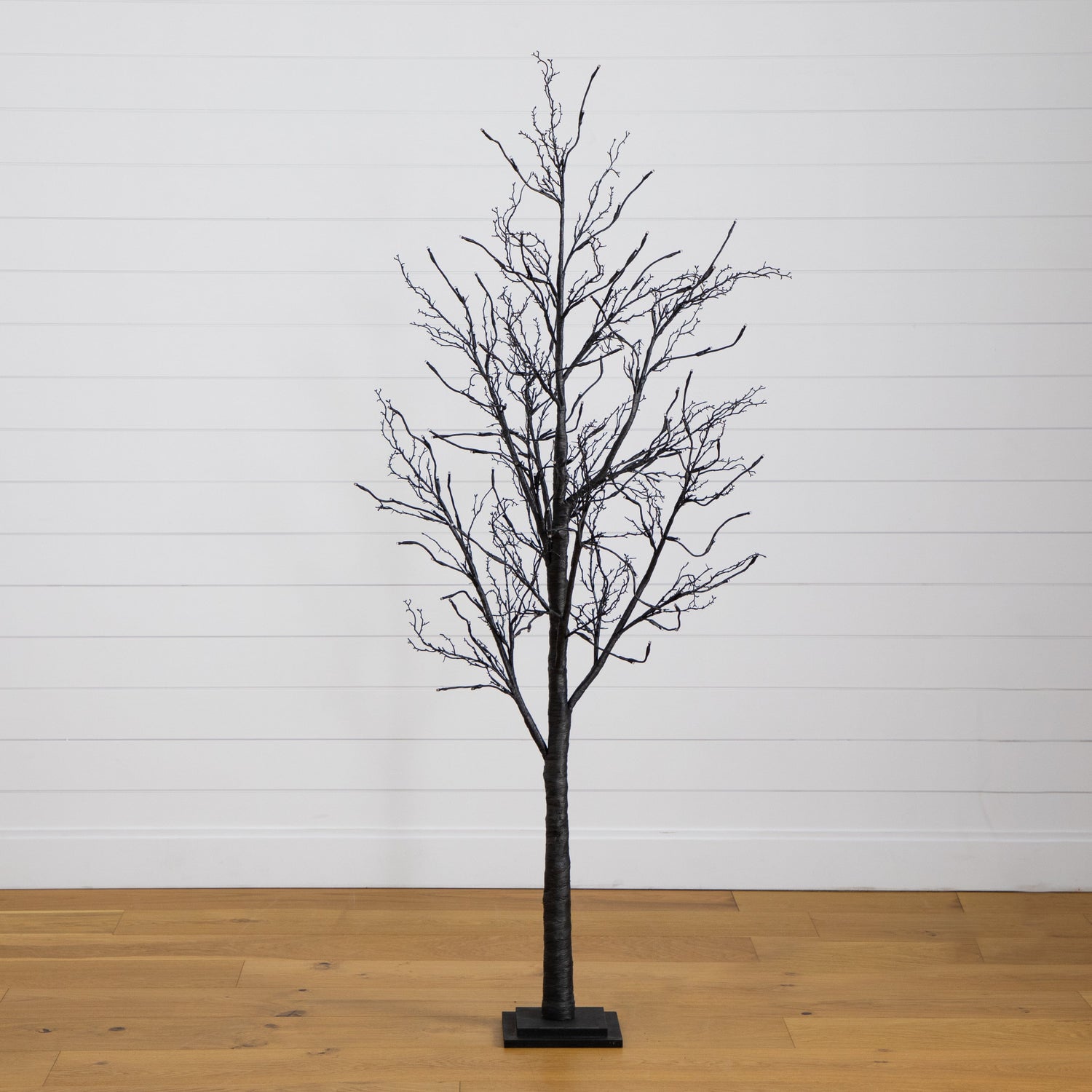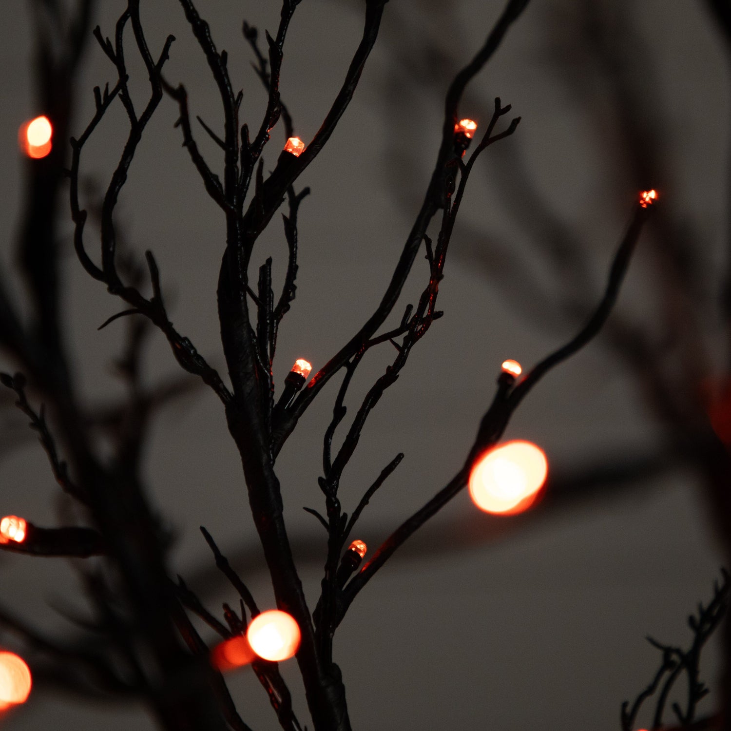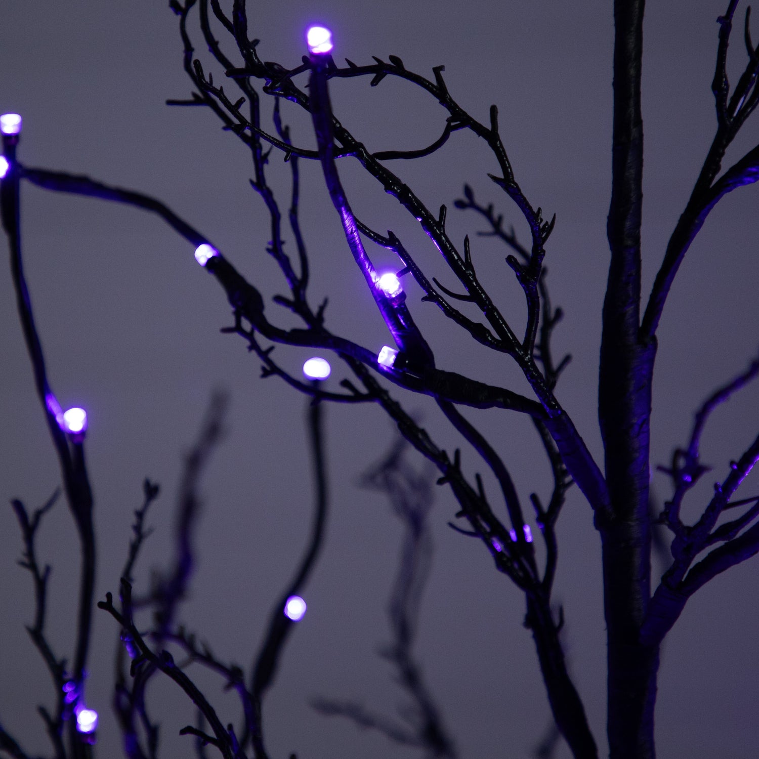 6’ Pre-Lit Halloween Black Twig Artificial Tree with 300 Orange & Purple LED Lights