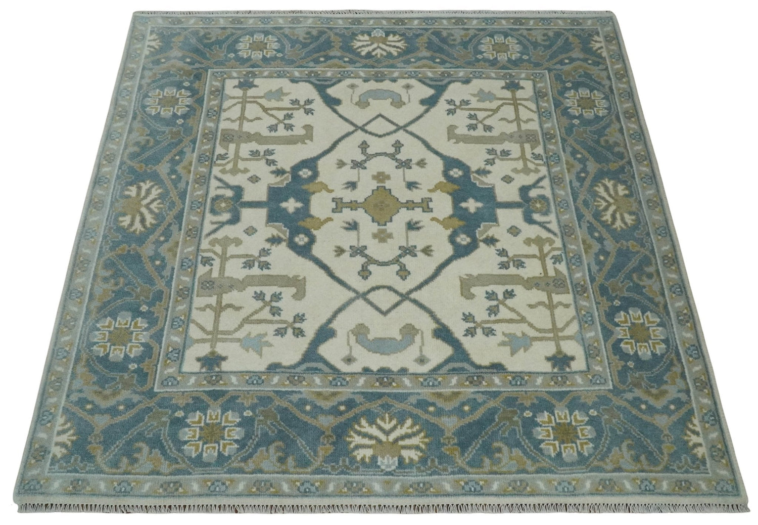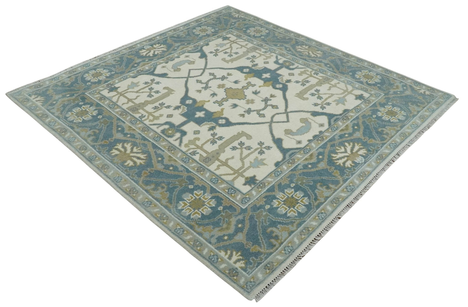 6x6 Square Hand Knotted Oriental Oushak Ivory, Blue and Beige Wool Area Rug | TRDCP153466SS