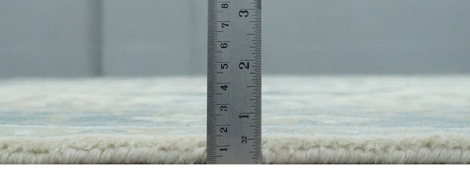 The Oriental Oushak design with a classic color combination of Ivory, Teal and Beige gives it an antique look. The rug is made with fine Wool. It is a perfect pick to give your interior a classic feel.