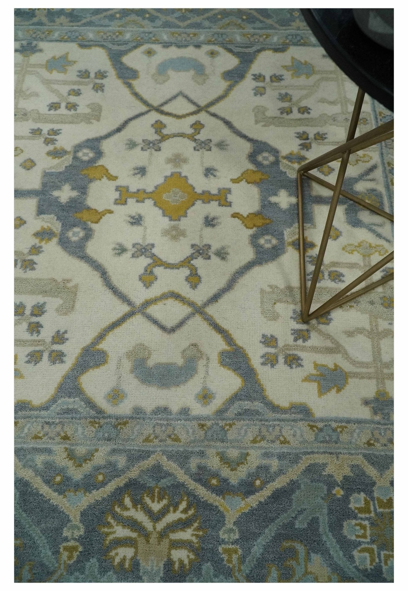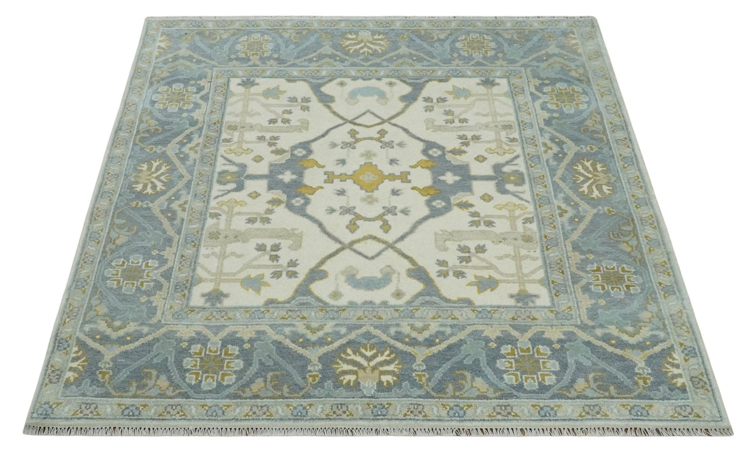 6x6 Square Hand Knotted Oriental Oushak Ivory, Charcoal and Beige Wool Area Rug - 6x6 square is backordered and will ship as soon as it is back in stock.