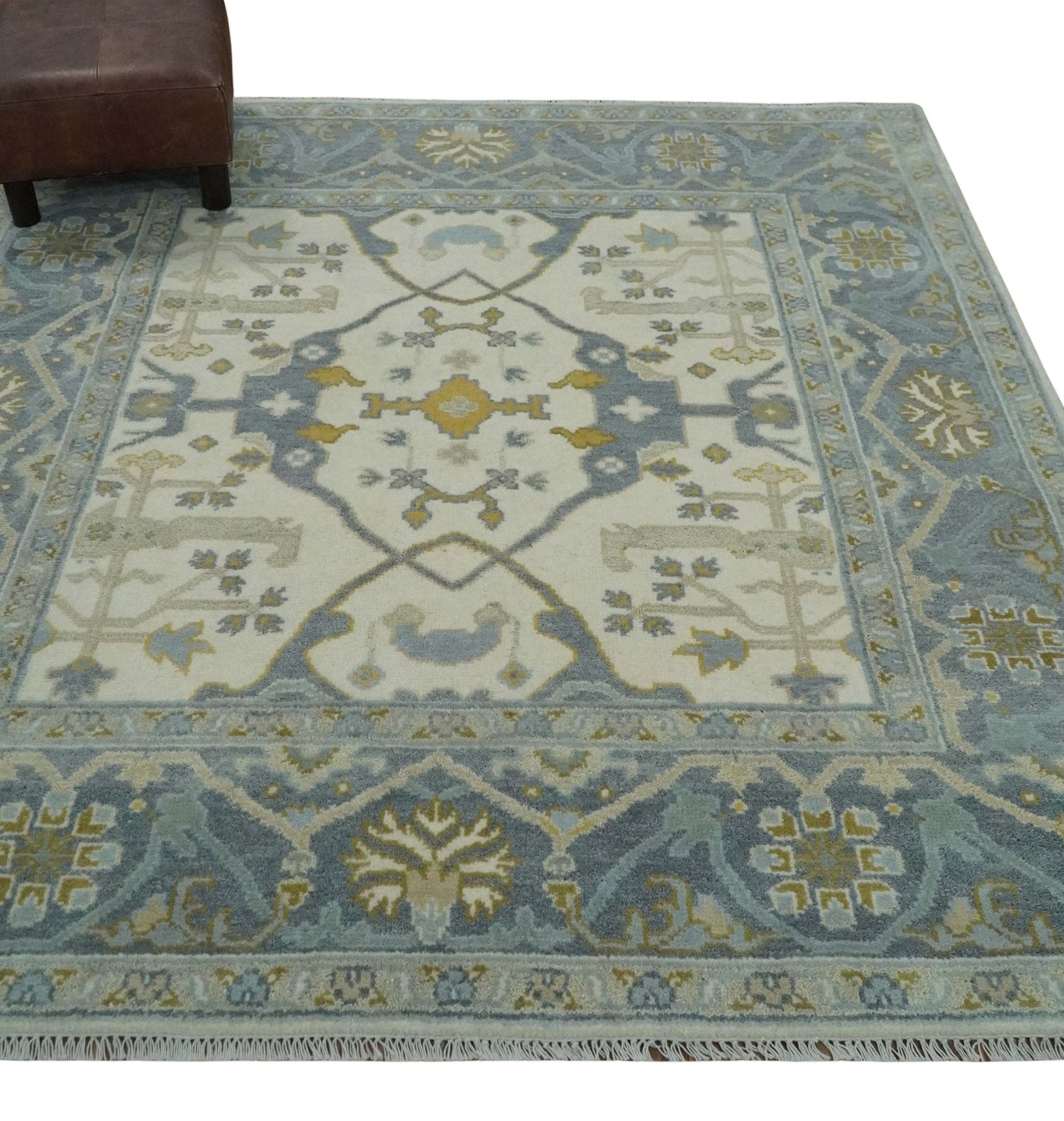 Oushak or Ushak rugs are Turkish rugs that use a particular family of designs. Oushak rug's origin can be traced back to the Ottoman empire. Oushak rugs are evergreen Persian rugs. A lot of Oushak rugs are machine-made now, but we have carried this legacy forward in India. Our Oushak rugs are handmade with fine imported wool in Bhadohi, which is one of the biggest rug manufacturing cities. Carpet weaving in the region dates back to the 16th century during the reign of Akbar. The skilled artisans of Bhadohi have been carrying the tradition of rug-making for centuries.