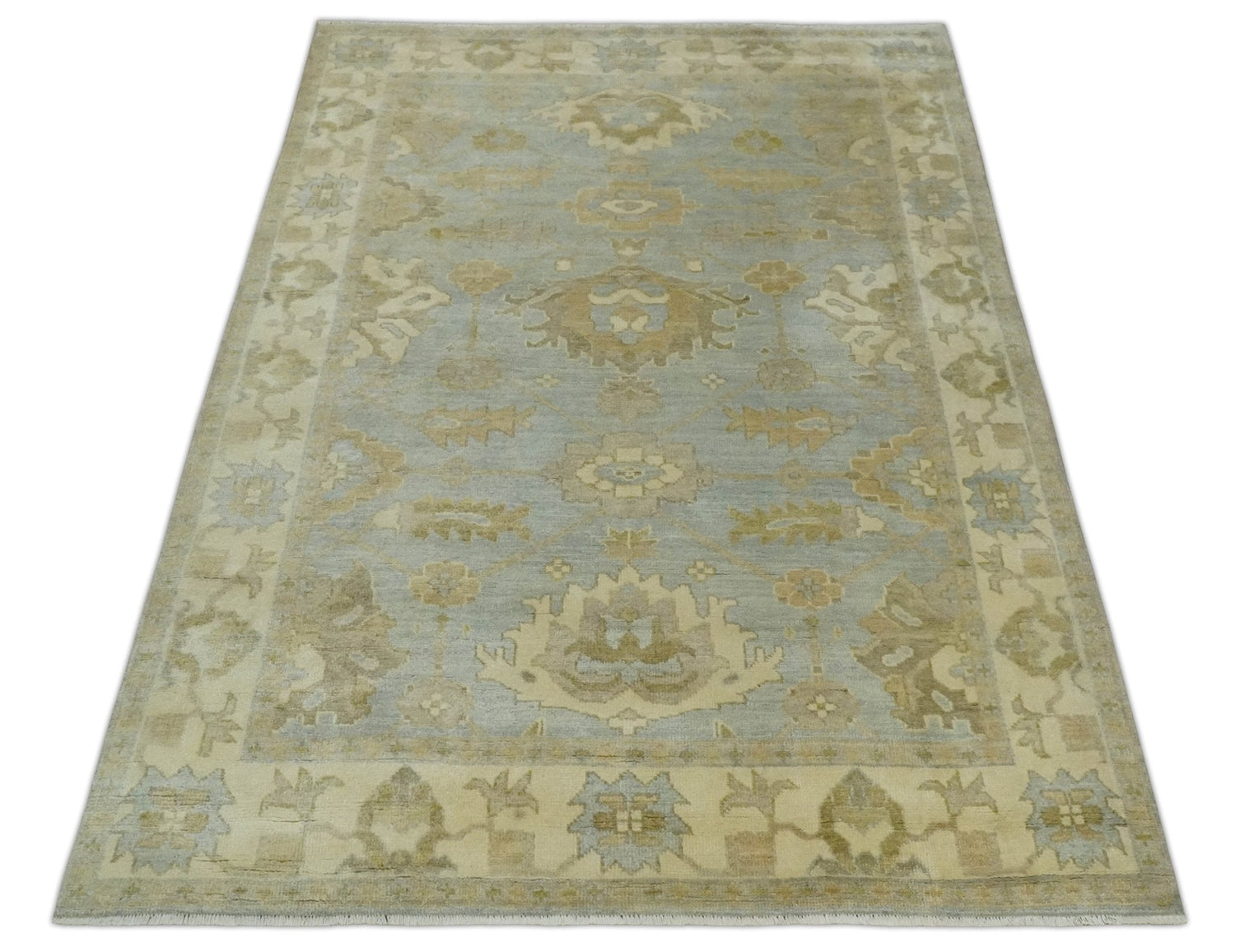 6x8 Hand Knotted Silver and Beige Antique Style Traditional Oushak Wool Rug - 5.8x8.2 is backordered and will ship as soon as it is back in stock.