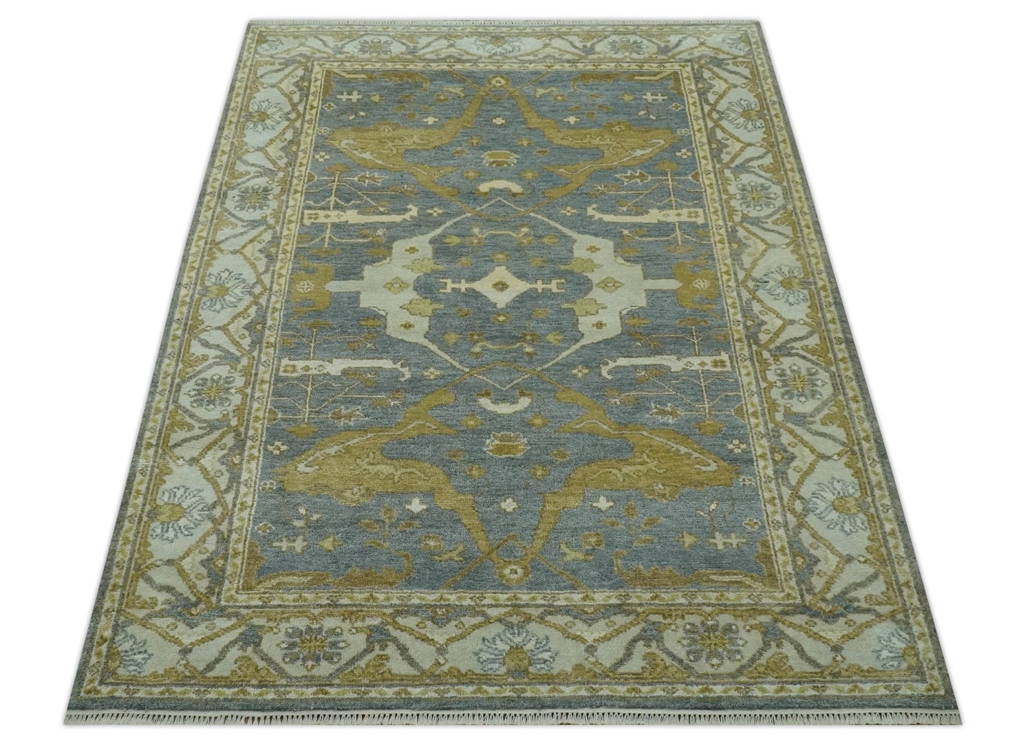 6x9 Hand Knotted Gray, Olive and Ivory Traditional Oriental Oushak wool area rug