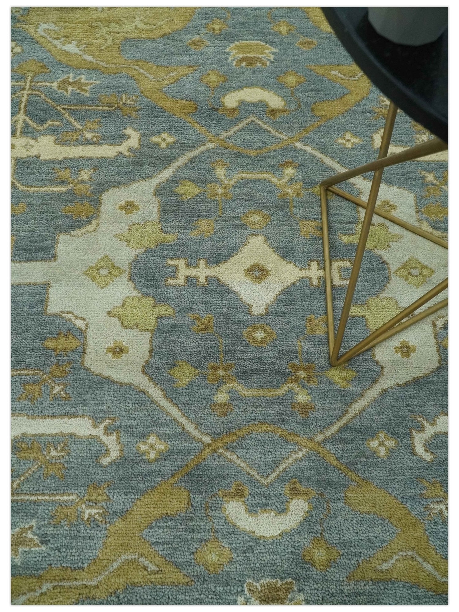 6x9 Hand Knotted Gray, Olive and Ivory Traditional Oriental Oushak wool area rug - 6x9 is backordered and will ship as soon as it is back in stock.