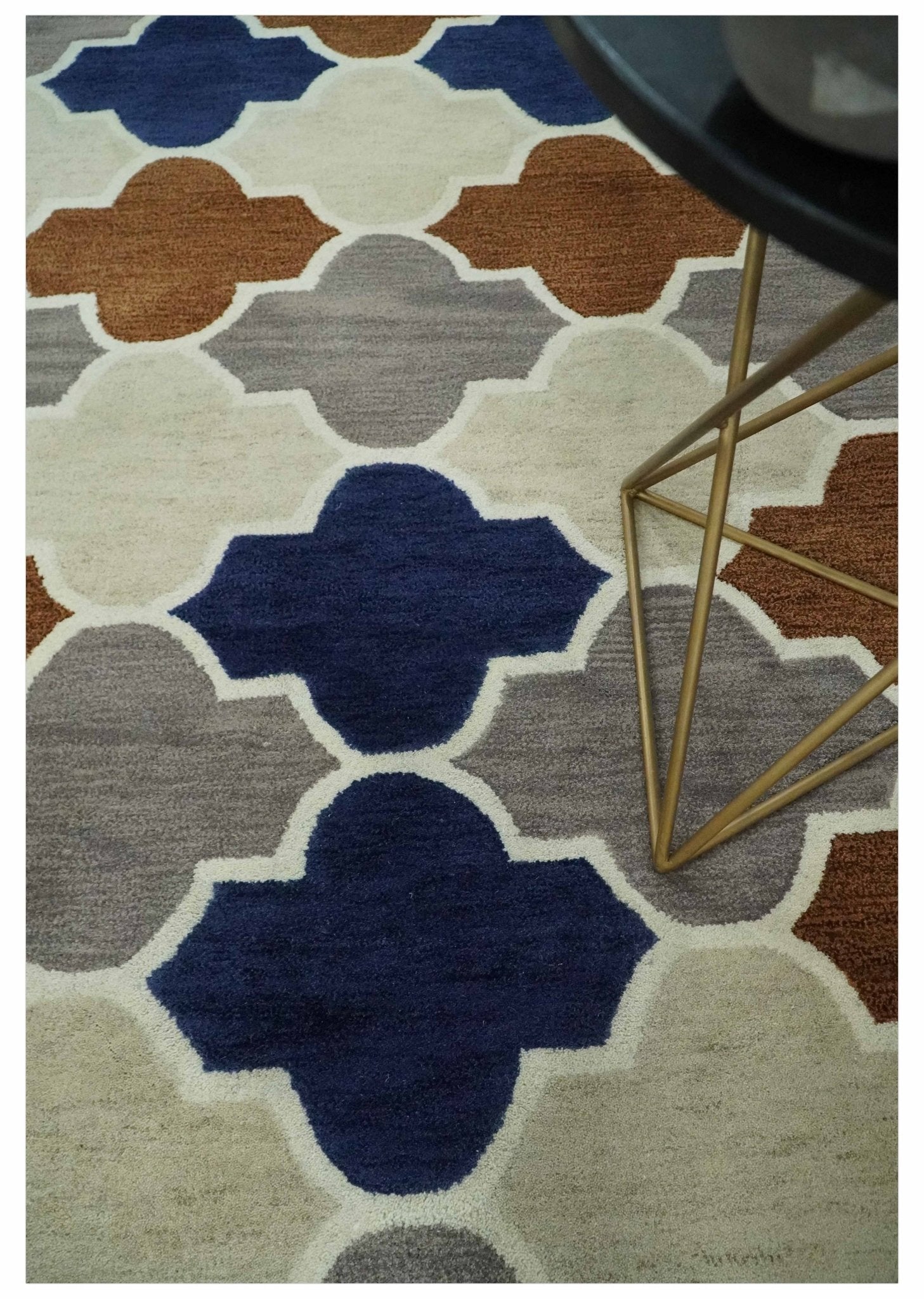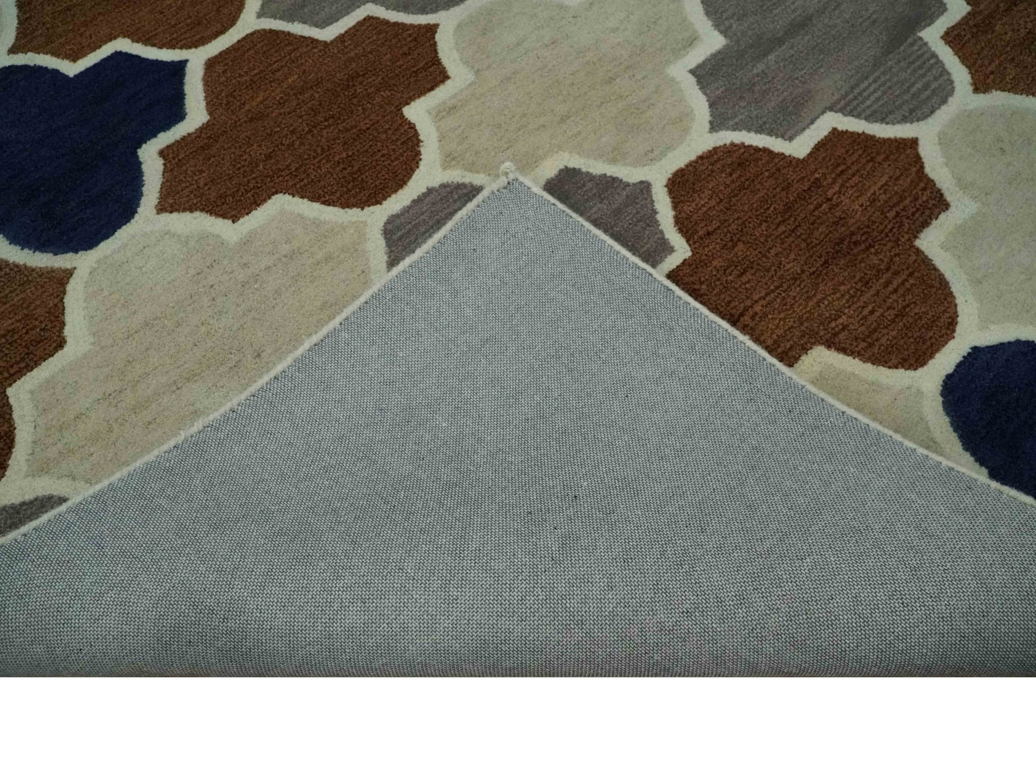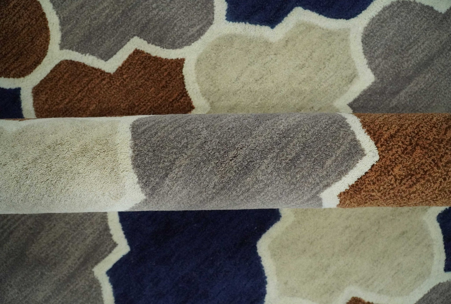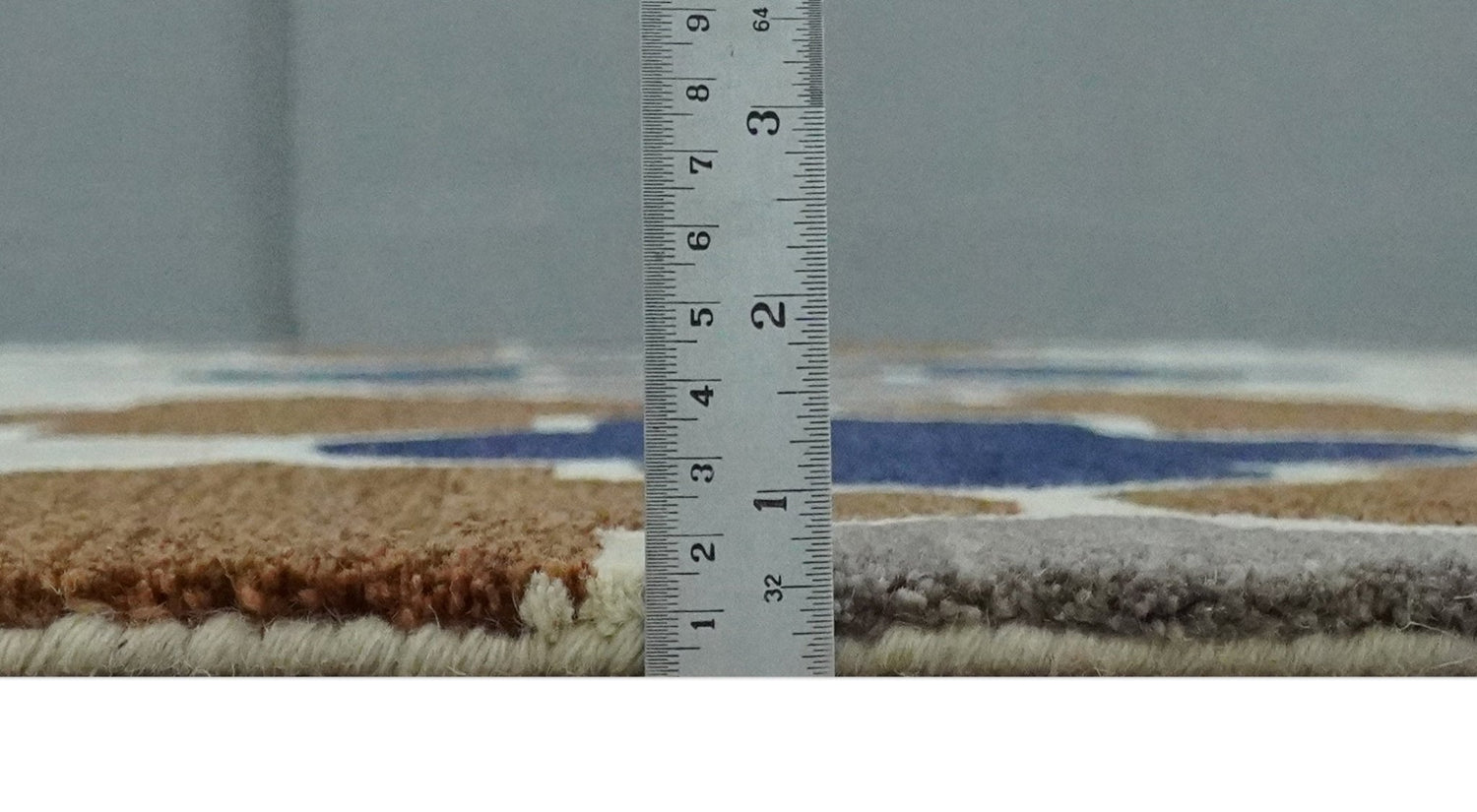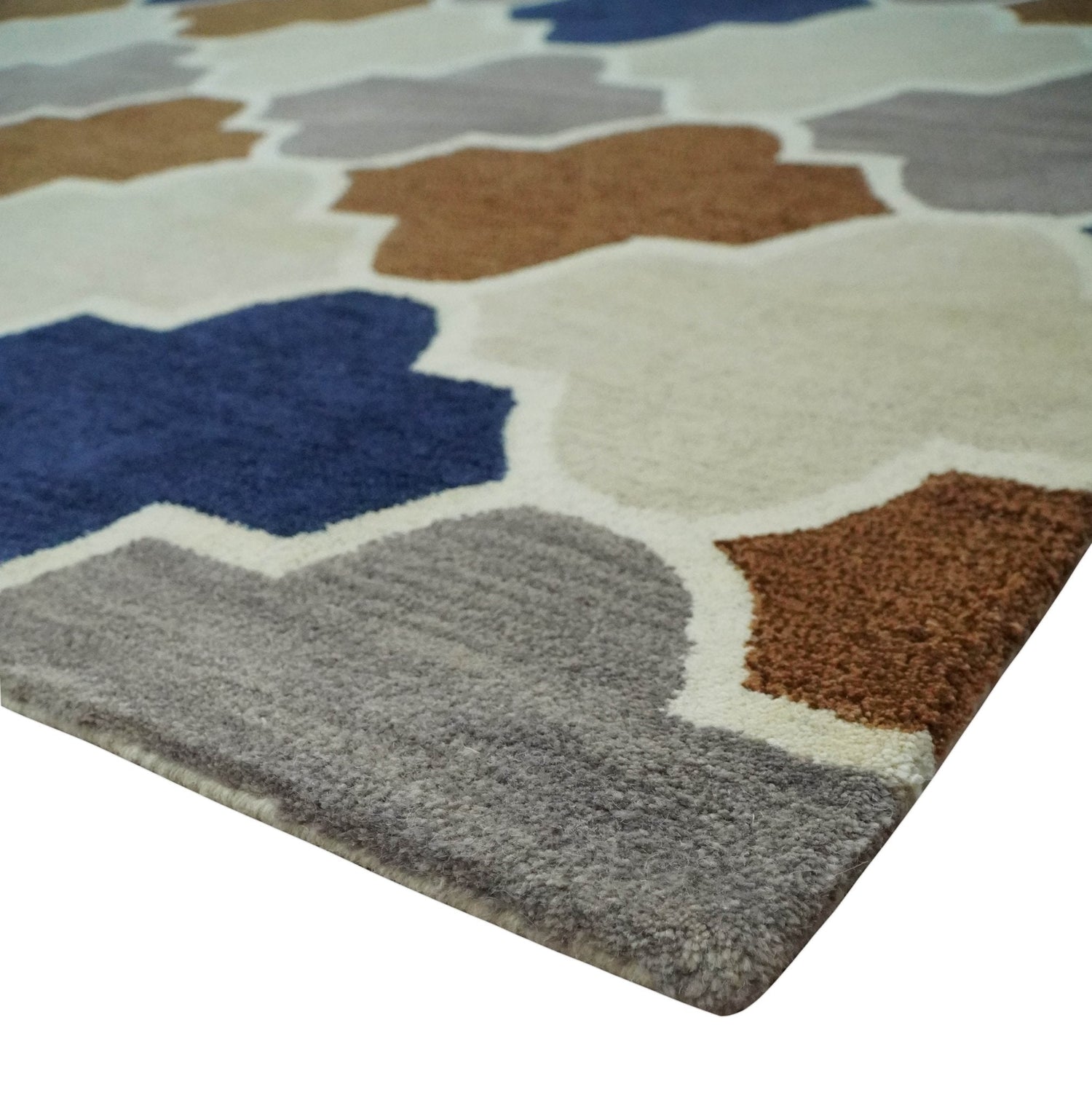 6x9 Ivory, Blue, Brown and Silver Ikat Pattern Hand Tufted Wool Area Rug - 6x9 is backordered and will ship as soon as it is back in stock.