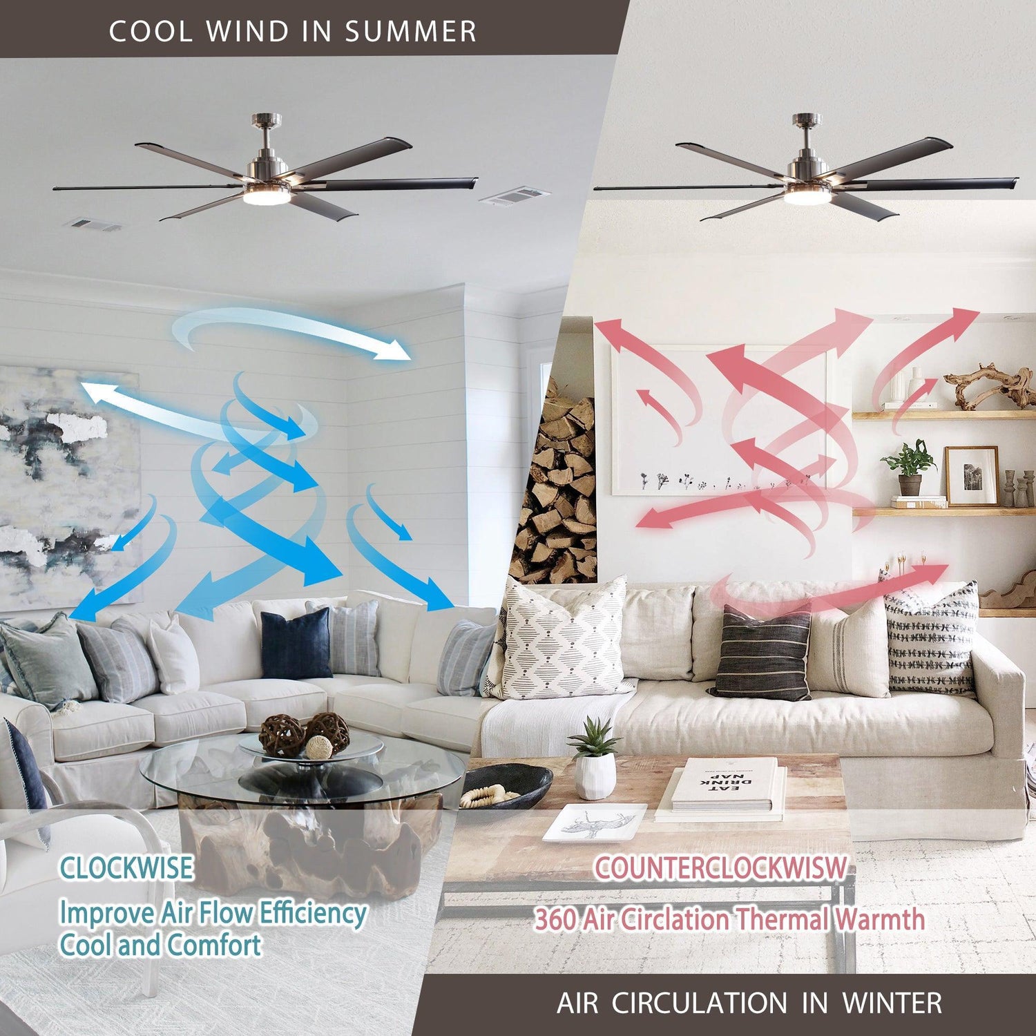 Great for large areas or lofts is this Kensgrove 72 in. Brushed Chrome ceiling fan. The powerful DC motor can cool a large room and push out 9,772 CFMs of cooling. It features a full-function 6-speed motor that is 3-times the power of a traditional ceiling fan. The included remote control allows you to control the light, and speed functions. The energy-efficient DC motor will start saving you on energy expenses while running on high, on only 36 watts.
