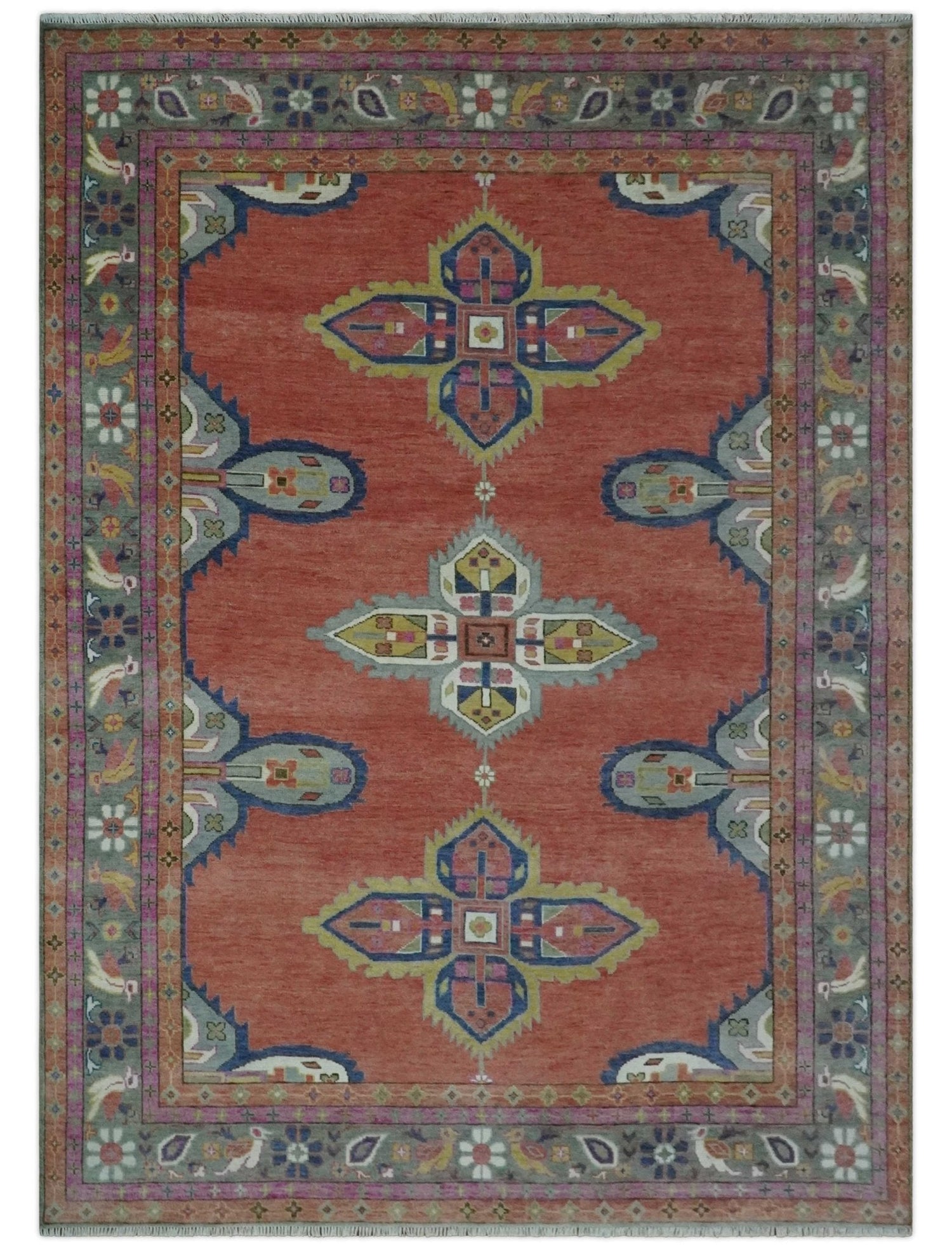 8x10, 9.5x12 and 10x14 Hand Knotted Dark Peach and Silver Traditional Wool Rug