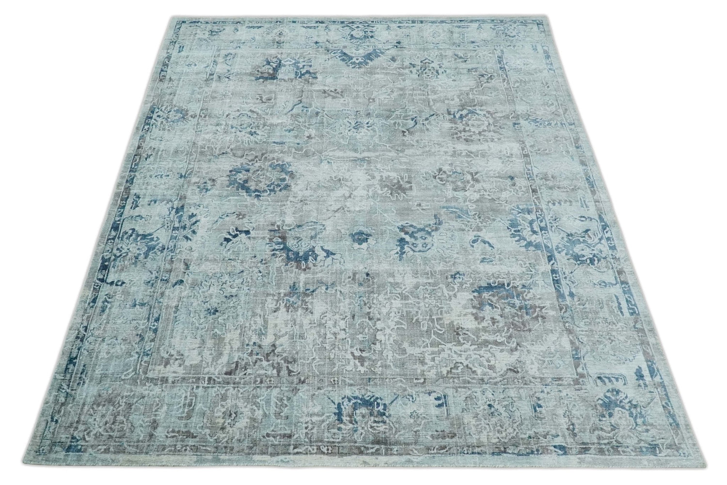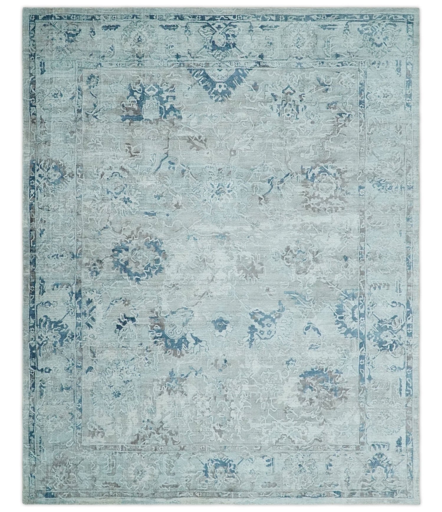 8x10 Aqua, Ivory and Silver Traditional Handmade Wool Area Rug