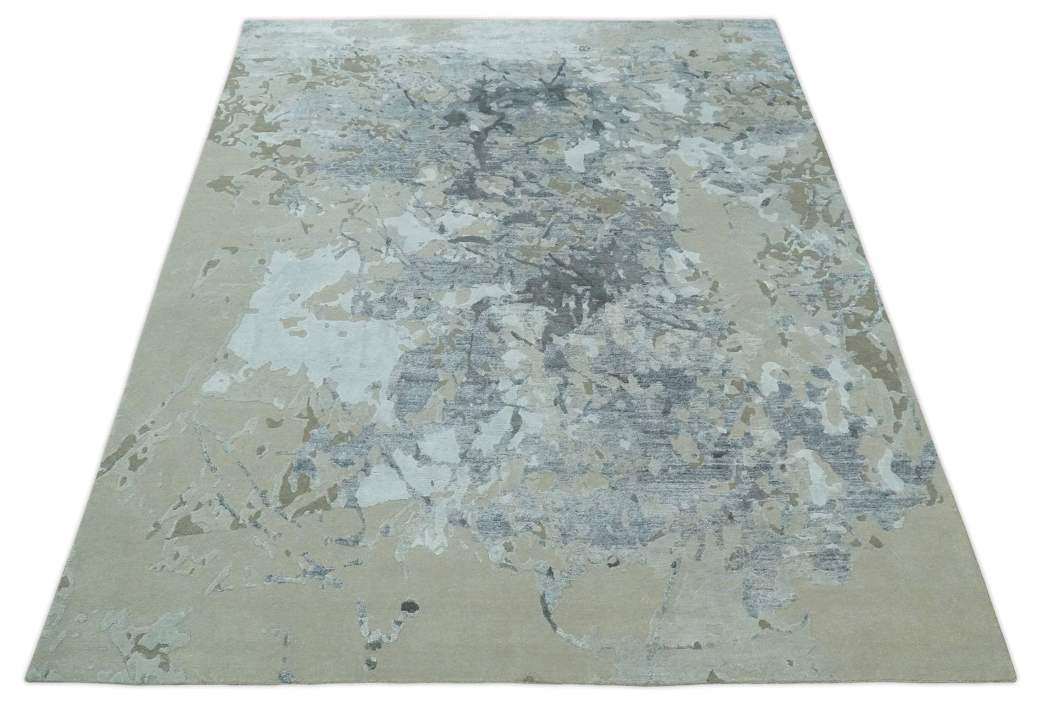 8x10 Beige, Ivory and Charcoal Modern Abstract Handmade Bamboo Silk Area Rug - 8x10 is backordered and will ship as soon as it is back in stock.