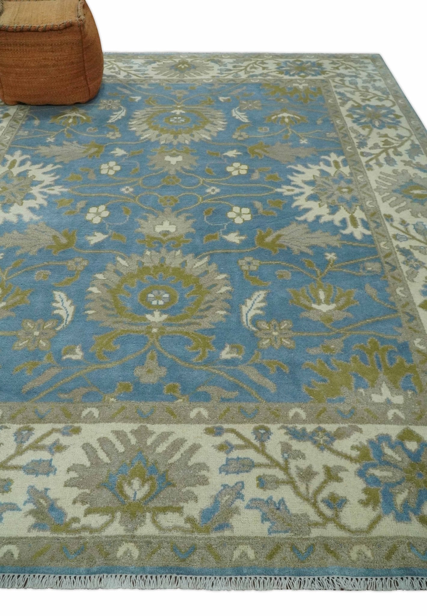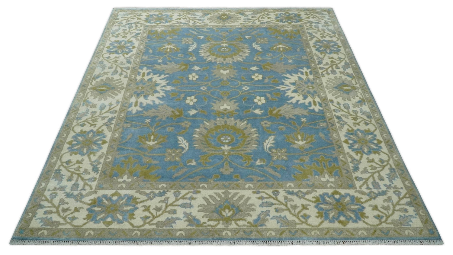 8x10 Blue, Ivory and Olive Hand Knotted Heriz Serapi Floral Area Rug | TRDCP1181810 - 8x10 is backordered and will ship as soon as it is back in stock.