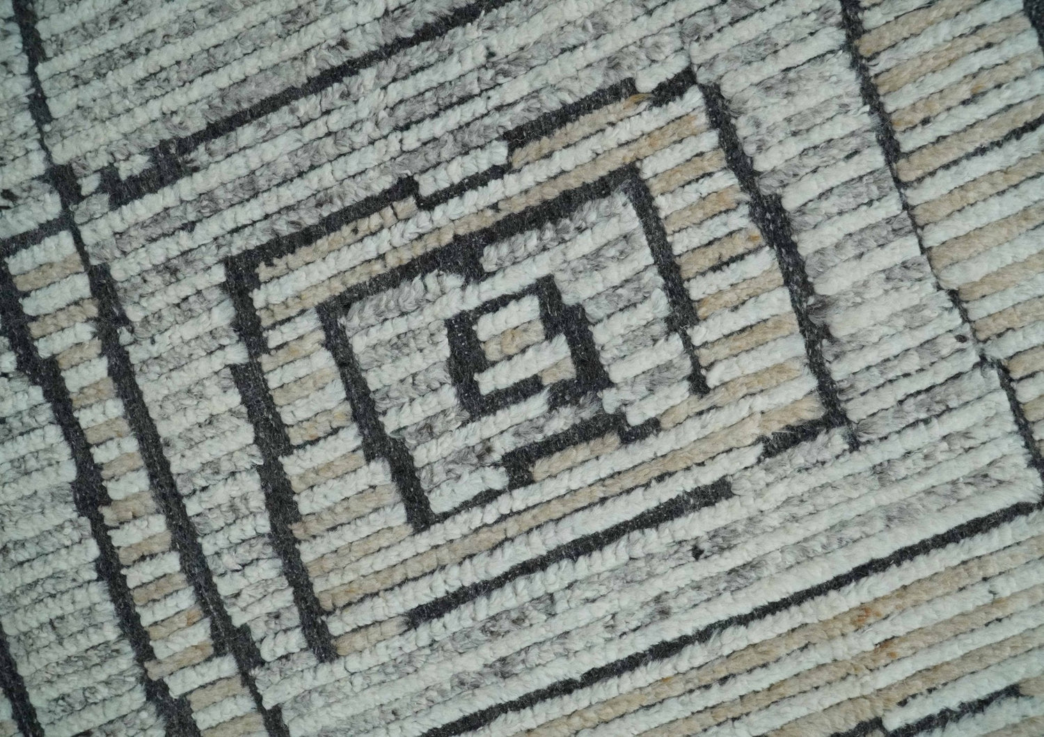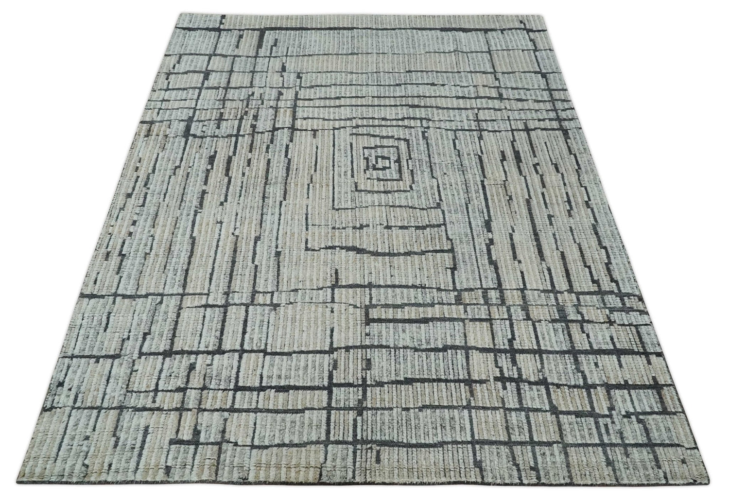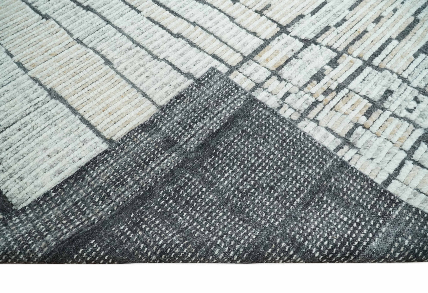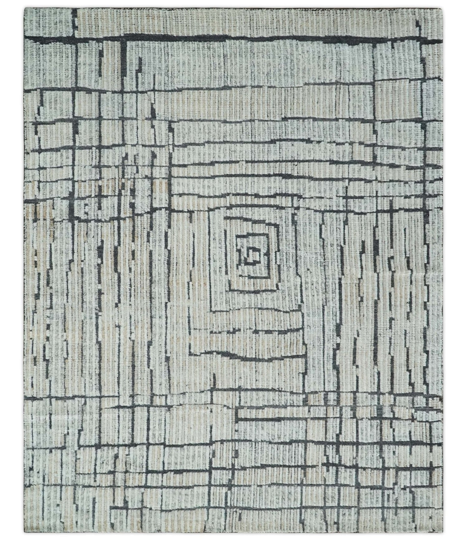 8x10 Contemporary Stripes pattern Beige, Silver and Charcoal Hand knotted wool Area Rug