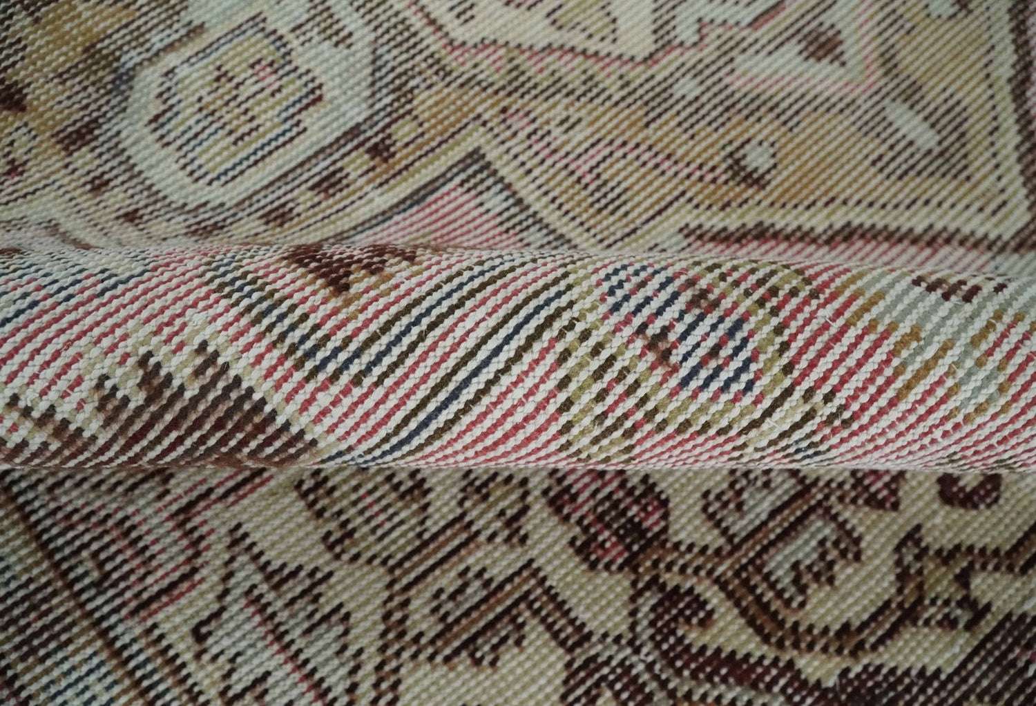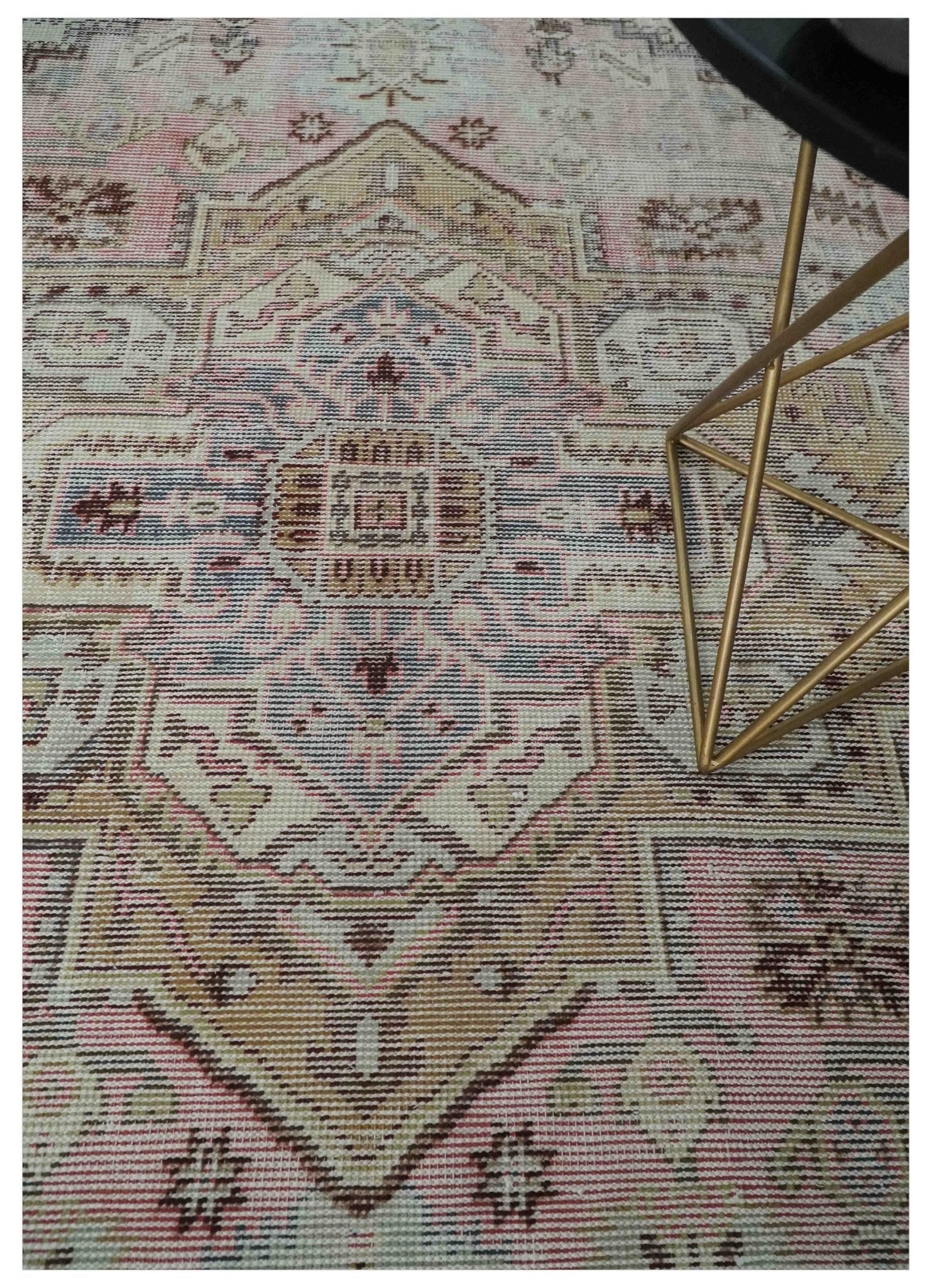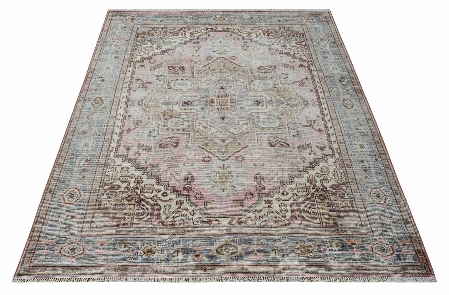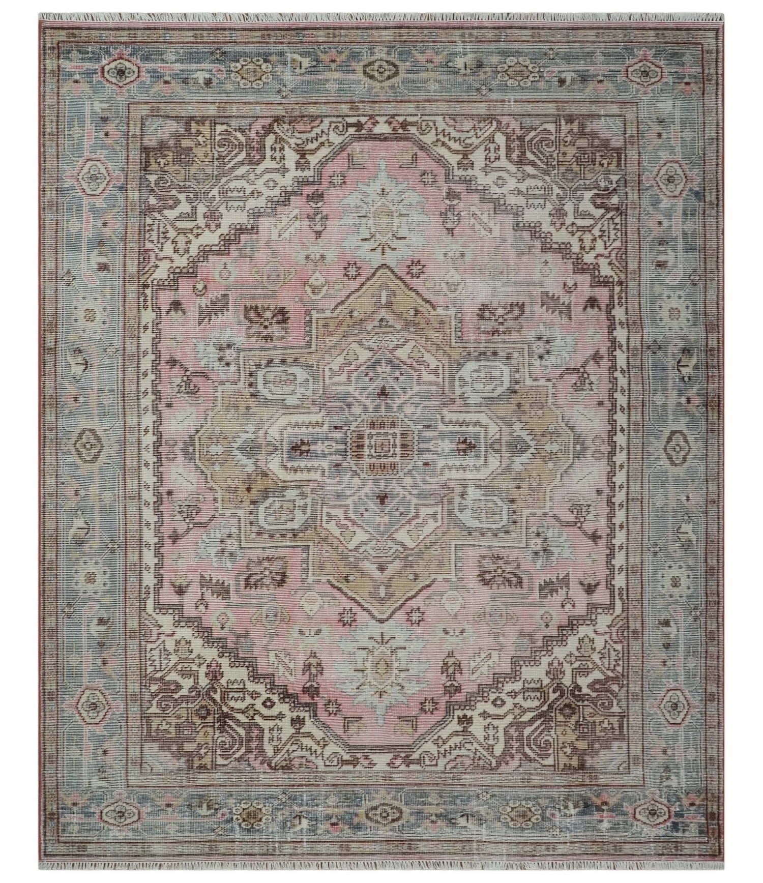 This classic antique finish Hand knotted Heriz serapi Wool Area Rug features a beautifully soft Beige, Peach and Silver color palette, perfect for any living room, bedroom or kids room. Each rug is individually crafted for durability and long-lasting beauty.