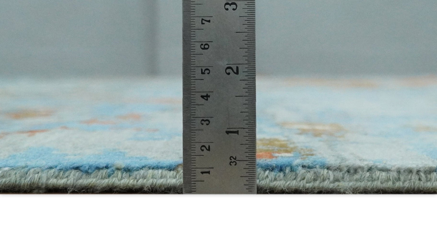 8x10 Fine Hand Knotted Beige and Blue Modern Abstract Style Antique Wool and Silk Area Rug | AGR43 - 8x10 is backordered and will ship as soon as it is back in stock.