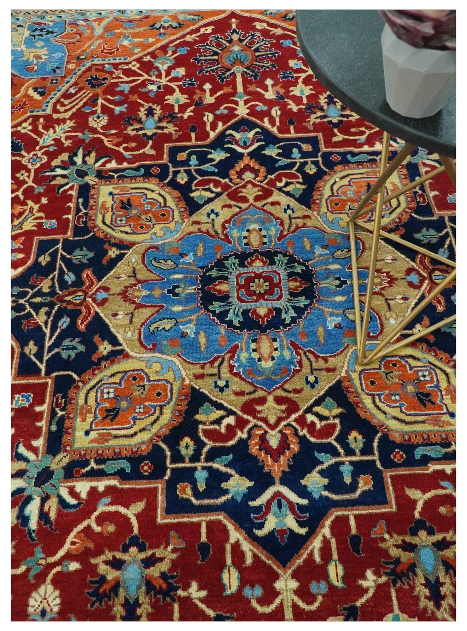 8x10 Fine Hand Knotted Rust and Blue Traditional Heriz Medallion wool area rug - 8x10 is backordered and will ship as soon as it is back in stock.